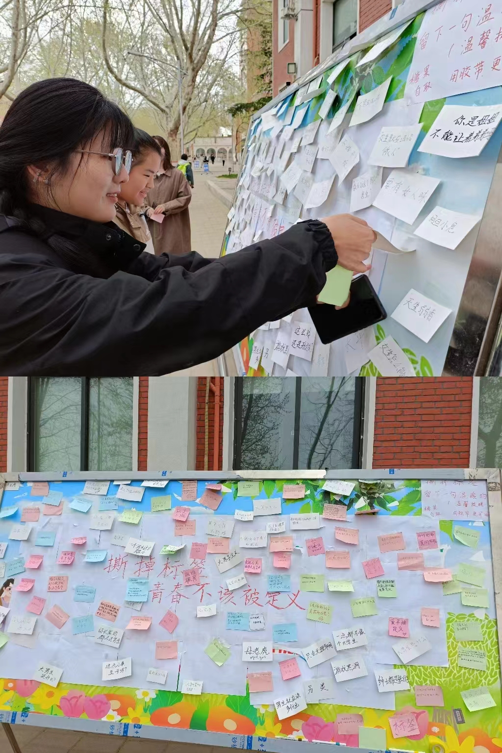 23级英语本科二班的同学开展了“撕掉不文明标签,青春不应该被定义”活动。随着同学们热情参加,不文明的标签,被一句句温暖的话所替代,留下了充满色彩和温暖的话语。