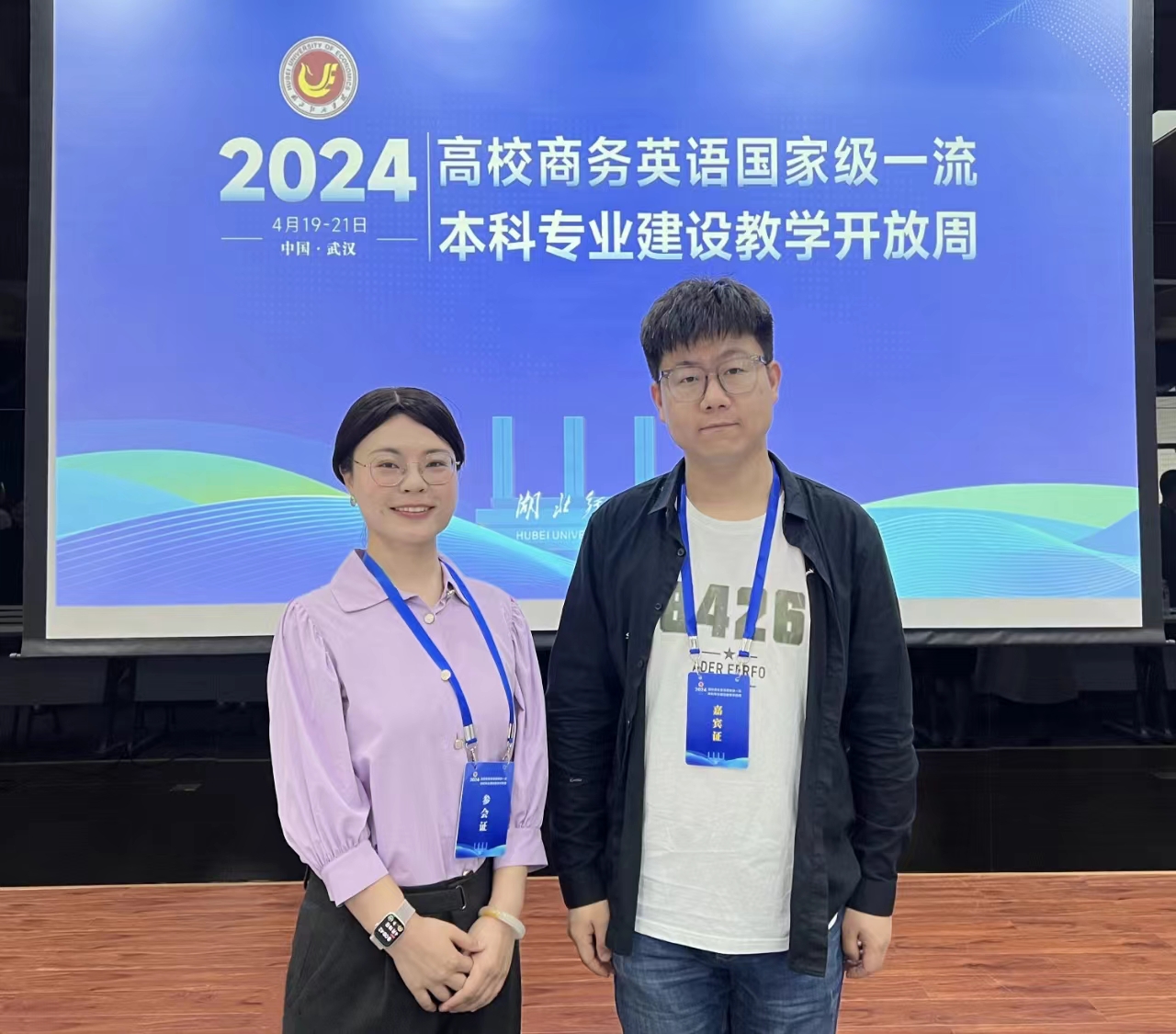 2024年04月18日-21日,beats365唯一官方网站教师马添翼唐瑜佳赴湖北经济公司参加全国高校商务英语国家级一流本科专业建设教学开放周活动。活动共计4天,由中国对外贸易经济合作企业协会商务英语专业工作委员会、湖北省商务英语理事院校联盟主办。来自北京语言大学、华中科技大学、北京航空航天大学、对外经济贸易大学、浙江工商大学、上海对外经贸大学、中南财经政法大学等全国10余个省份高校及企业代表120余人通过专题讲座、企业论坛、公开课、文化走访等多种形式,共同交流探讨商务英语专业建设、课程建设及产教融合等议题。