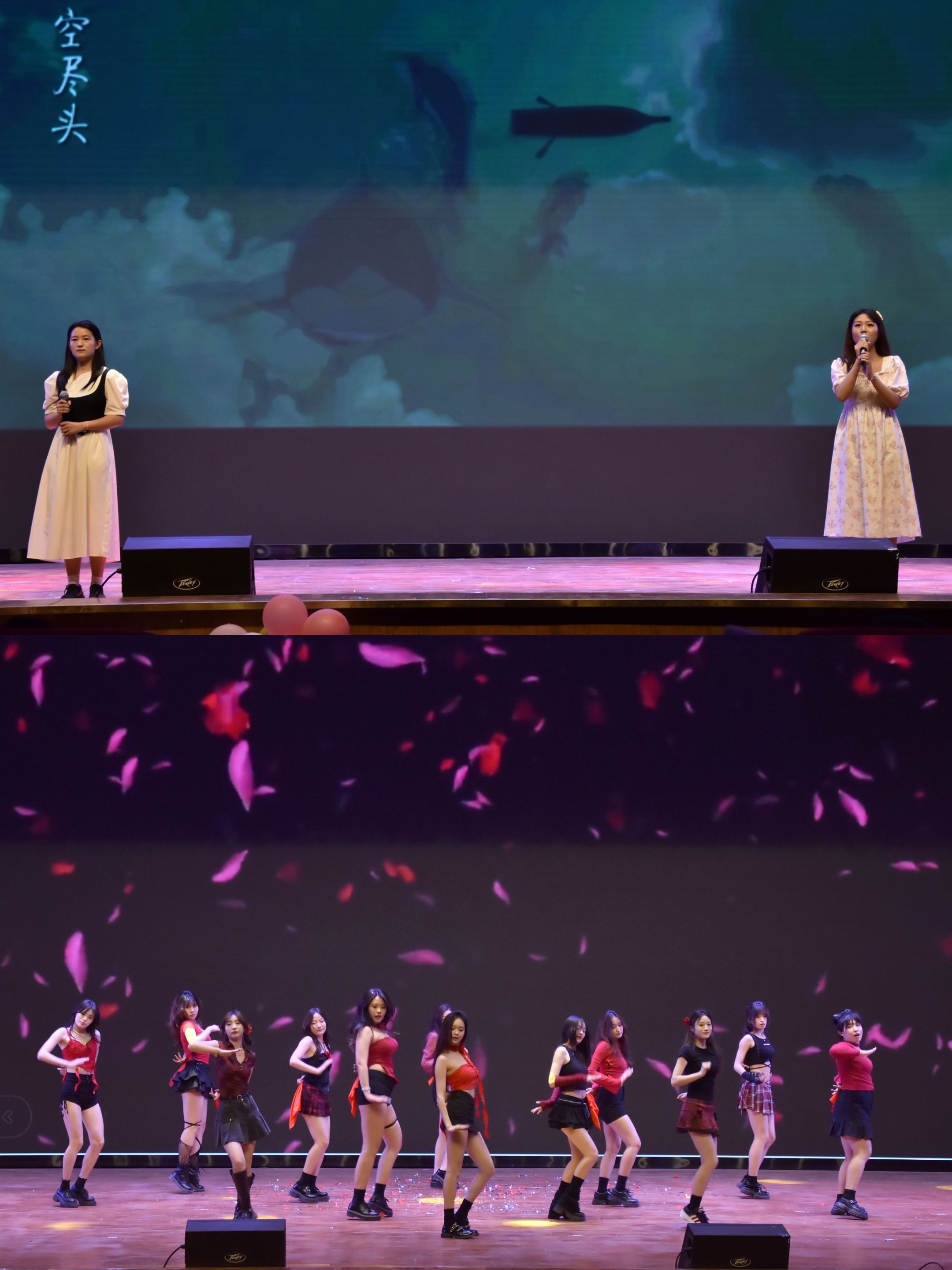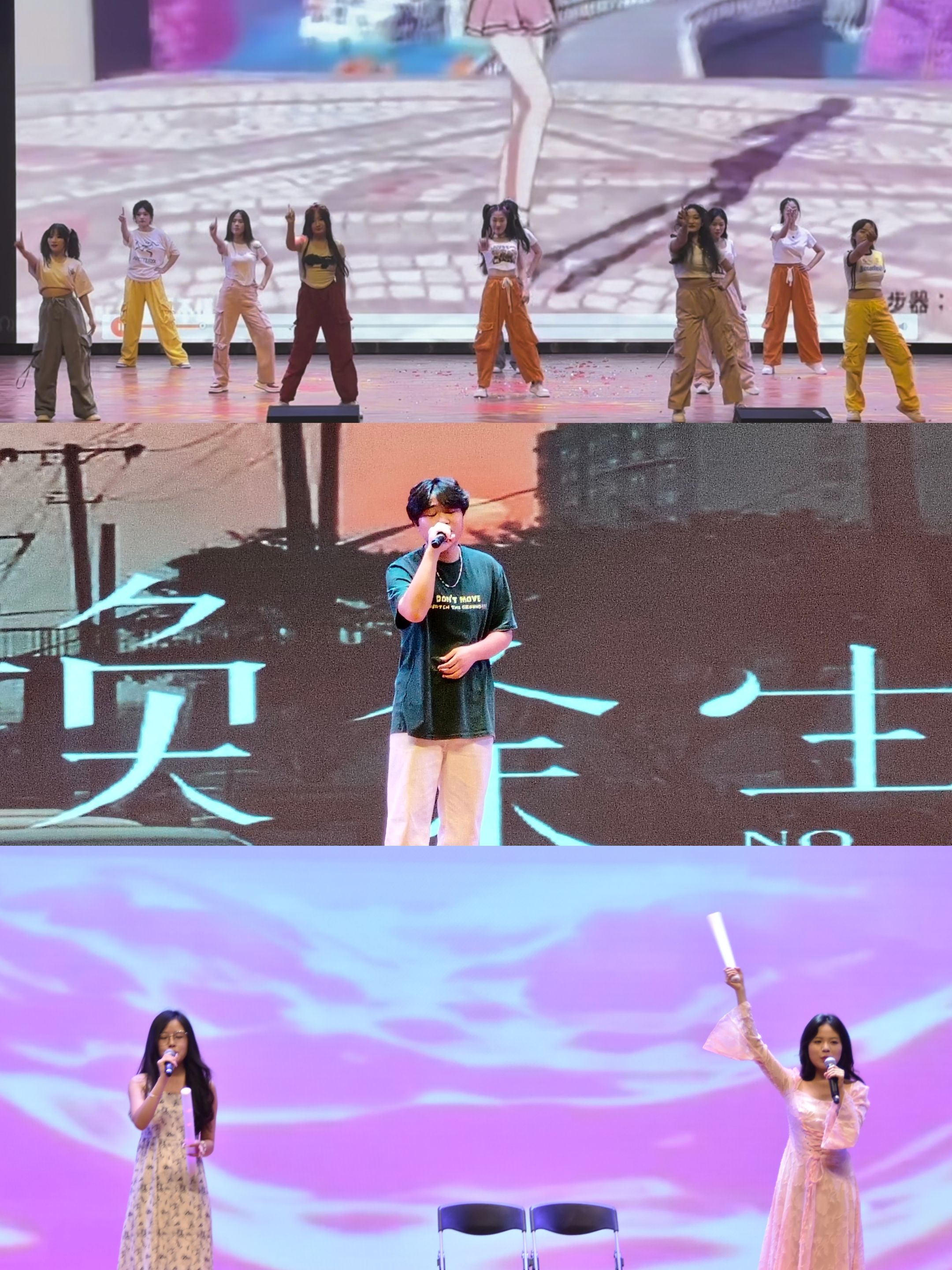 本次晚会共有个十三个节目,晚会首先由一段舞蹈炸裂开场激起了大家的热情,然后由音乐和舞蹈相继串烧将气氛拉至高潮,接着由老师和同学们共同演绎的音乐短剧致敬经典、精彩纷呈的配音剧带大家身临其境,更有神秘嘉宾出现为大家带来音乐的极致享受,最后由一曲欢快热烈的舞蹈结束本次晚会。晚会期间更是礼品糖果不定时发送,为各位观众带来了一场视觉、听觉与感觉的极致盛宴。