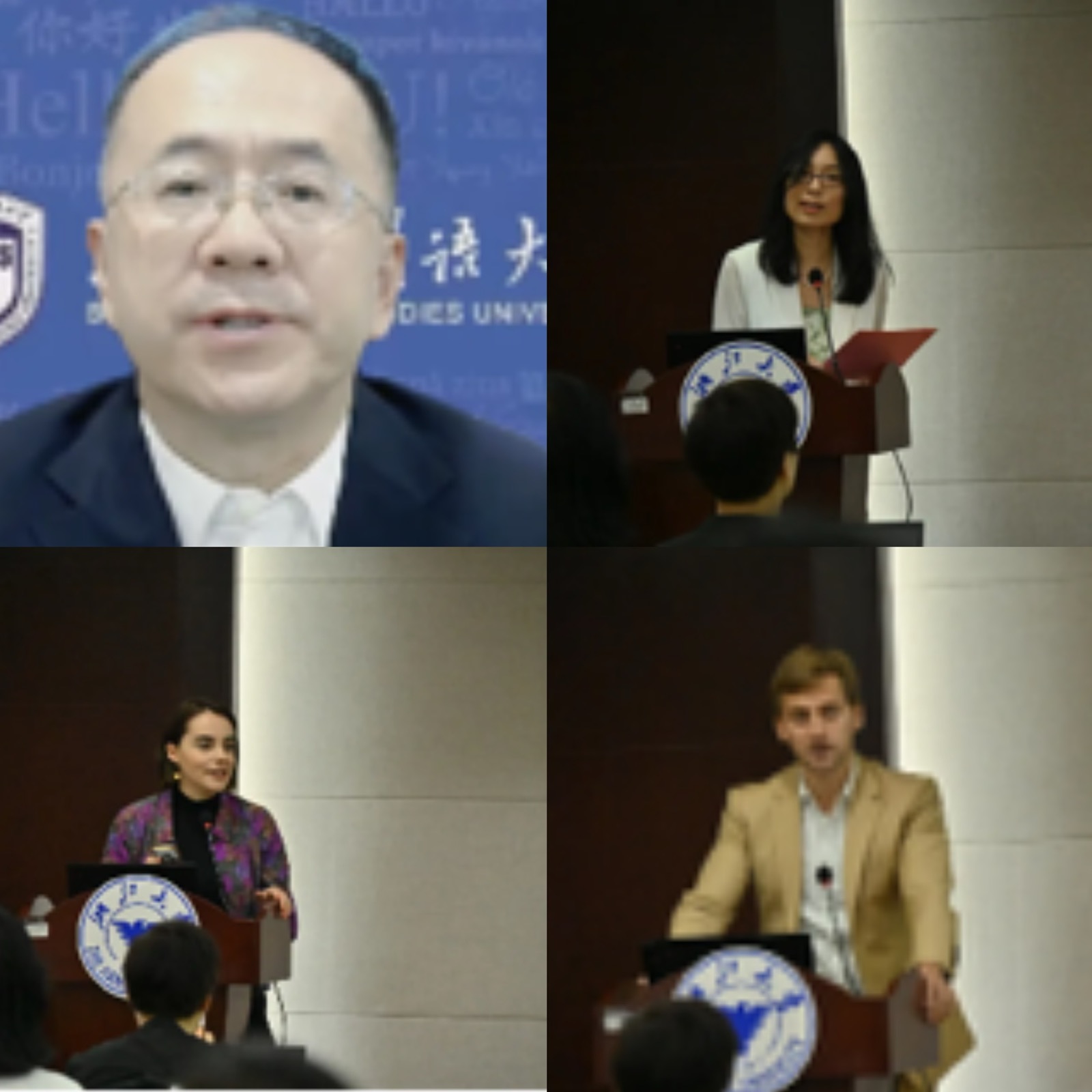 主题报告环节,德国波鸿大学日耳曼语言学研究所教授兼学业能力培养与测试研发学会(g.a.s.t.)学术主任、德福考试院产品研发与学术研究负责人Anastasia Drackert女士作《教师在对外德语课堂中的测评能力》报告,提出当下德语教师应具备的核心能力(评估员工表现的能力)。浙江大学闵尚超教授作《AI赋能的外语教学评研一体化》报告,分享了基于诊断测评的教学评一体化体系构建和AI赋能的平台建设,为员工提供个性化学习体验。全国高校德语专业四级考试中心负责人、南京大学孔德明教授,南京大学常晅博士,南京工业大学刘玲玉副教授共同完成《德语专业四级考试命题实践与思考》报告,详细阐述了德语专业四级考试(PGG)。教育部外指委德分委委员、全国德语教师发展中心负责人、浙江大学德国文化研究所所长李媛教授作《基于中国德语学习者语料库(CDLK)的德语教学评研一体化探索》报告,详细展示了基于中国德语学习者语料库(CDLK)的研究成果及其对教学评研的启发。歌德公司德语教学合作处主任Vera Trojansky女士和德国学术交流中心(DAAD)北京代表处副主任刘潇潇博士分别作《歌德公司在华对外德语工作网建设(DaF-Netzwerkarbeit in China)》《德国学术交流中心在华对外德语工作重点(Förderung der deutschen Sprache - ein Arbeitsschwerpunkt des DAAD in China)》报告,分别详细展示了歌德公司和德国学术交流中心在德语语言教育领域的积极探索和努力。