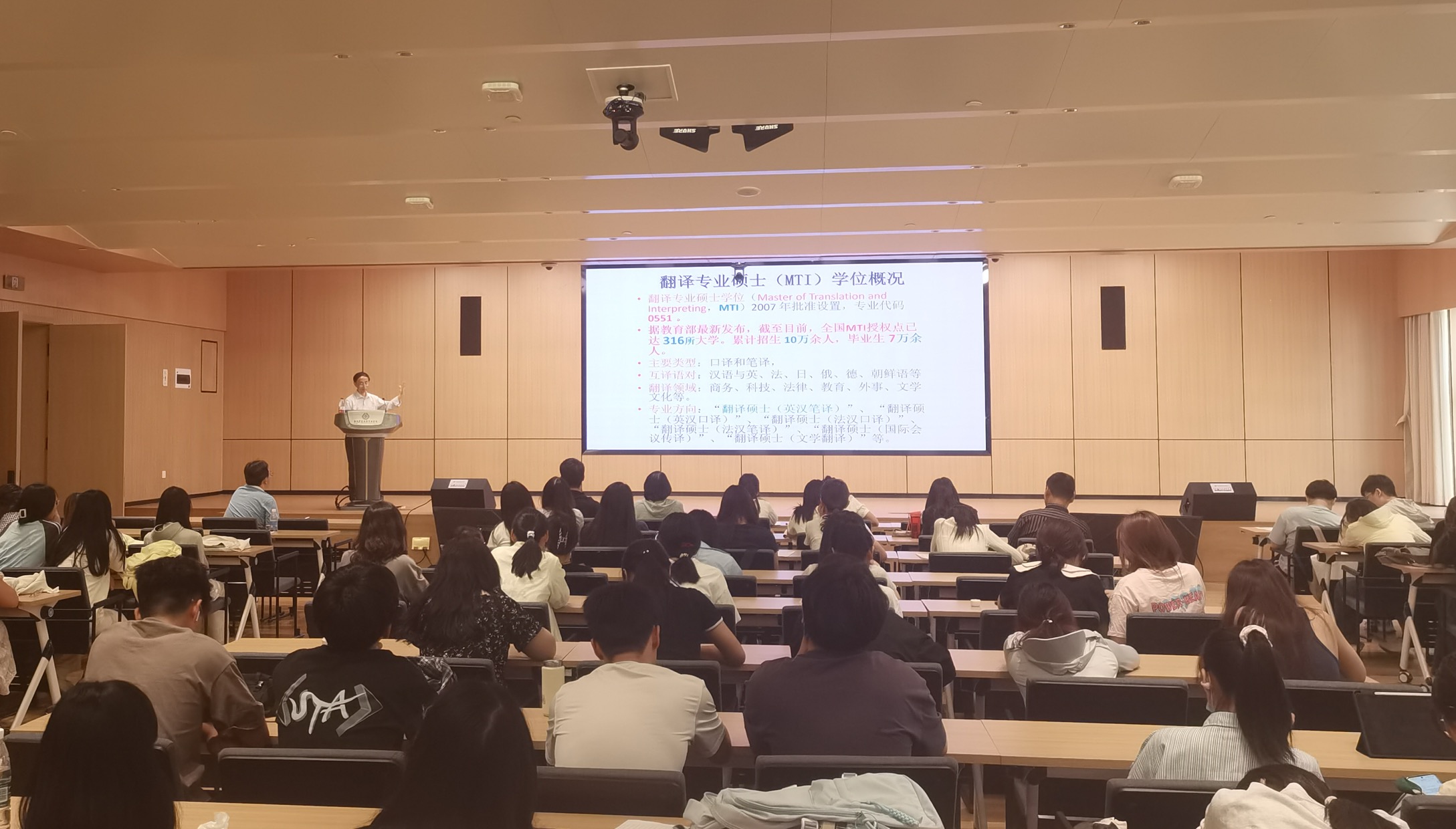 2024年05月31日下午,上海海事大学MTI学位点负责人宋志平教授应邀为公司beats365唯一官方网站师生做了题为“MTI职业理念与技术素养”的讲座。讲座在图书馆1号报告厅举行,商务英语教研室学科带头人张保培老师主持了讲座,来自公司商务英语、英语和翻译专业的200余名师生参加了讲座。