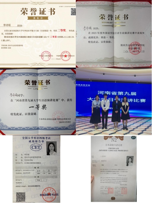 砥砺奋斗、敢于争先是李诗瑶同学在校期间的写照。她讲好中国故事,斩获省赛一等奖;她以青春力量,投身疫情防控志愿者服务;她秉承体育精神,在河南省省运会中脱颖而出;她终不负所望,为校争得荣光!