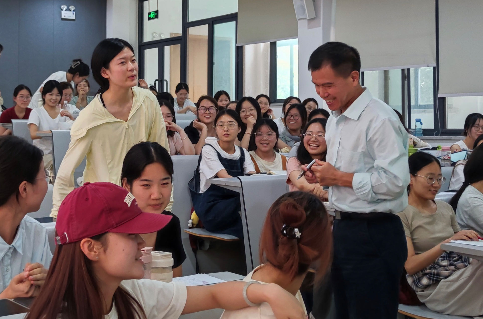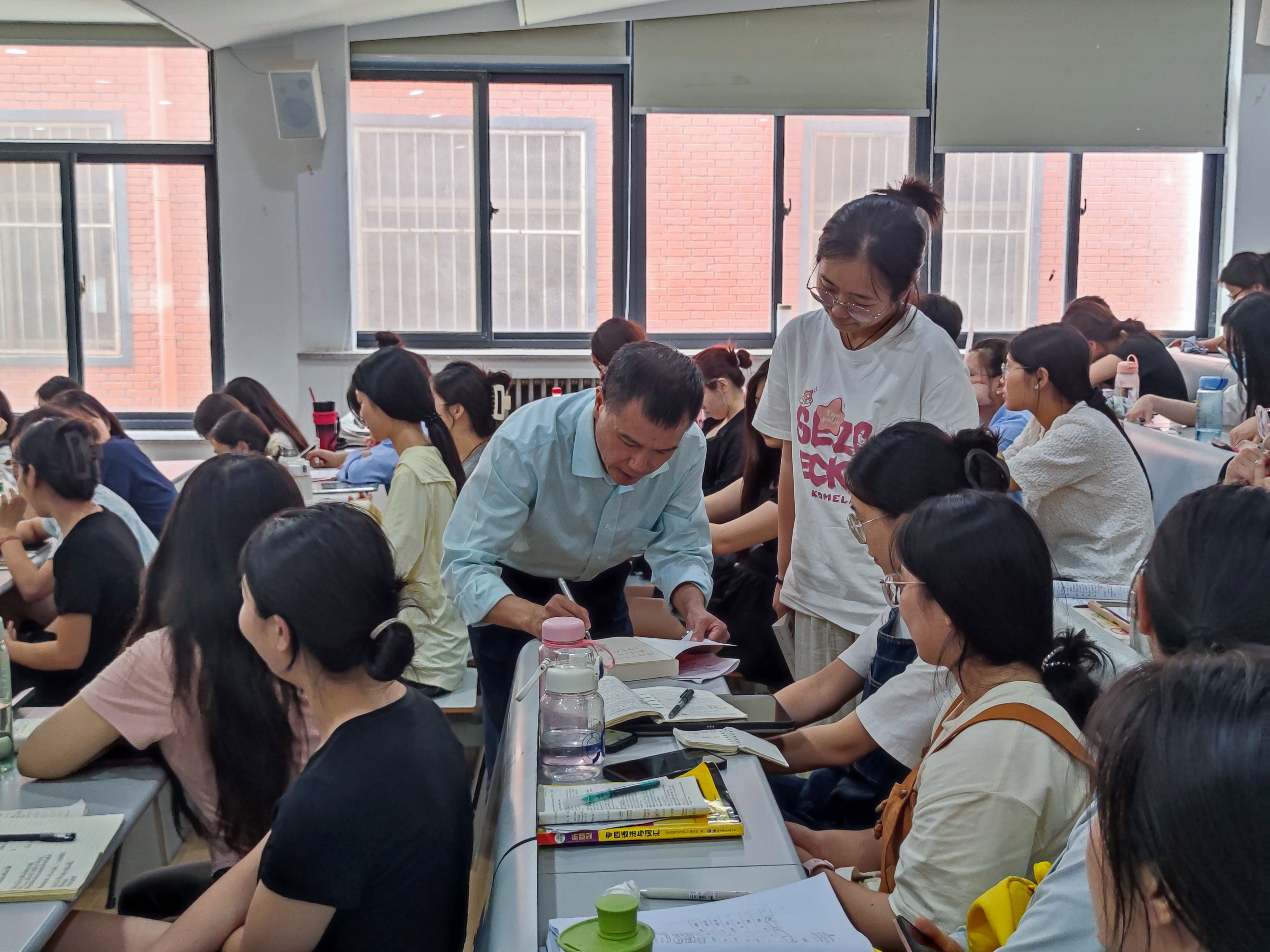 讲座结束后,与会教师与王教授合影,继续探讨翻译问题。