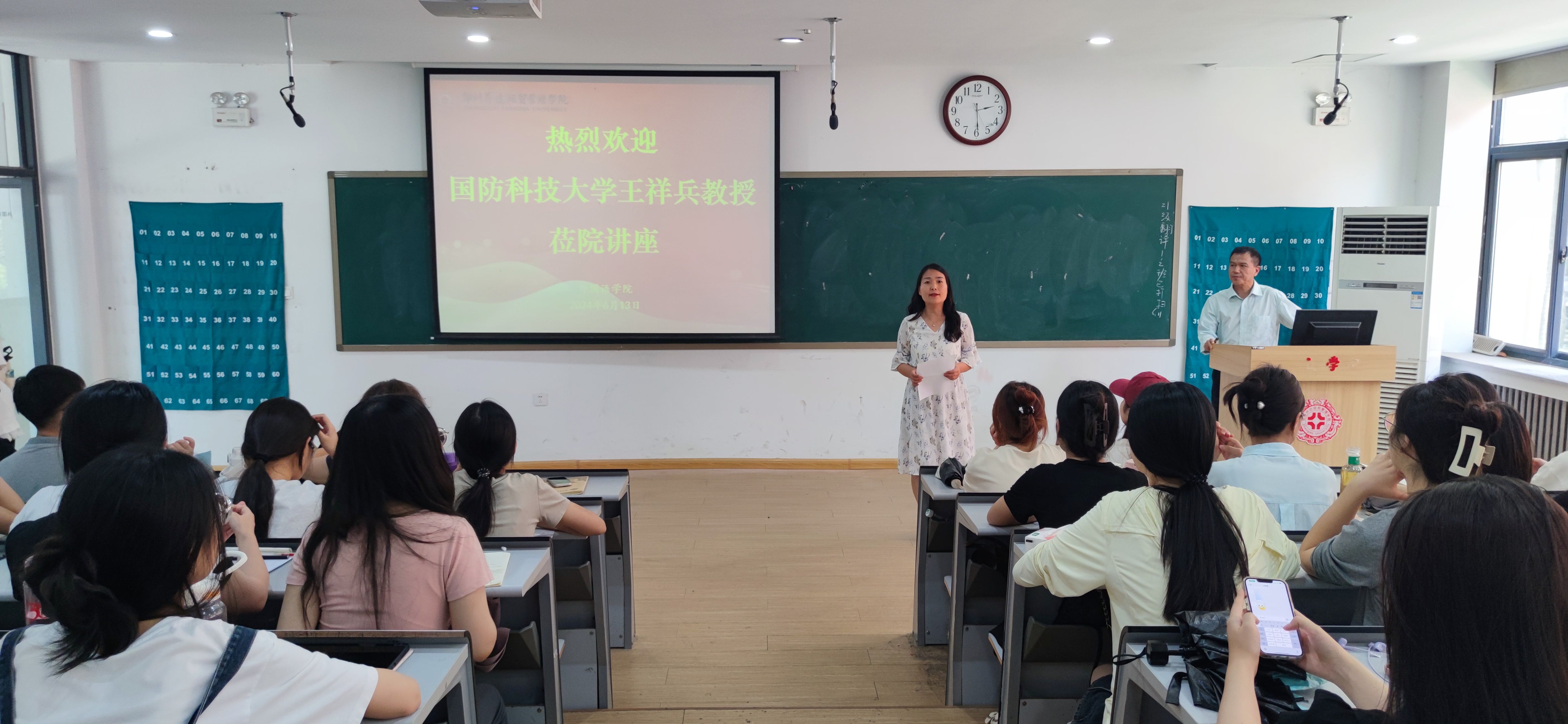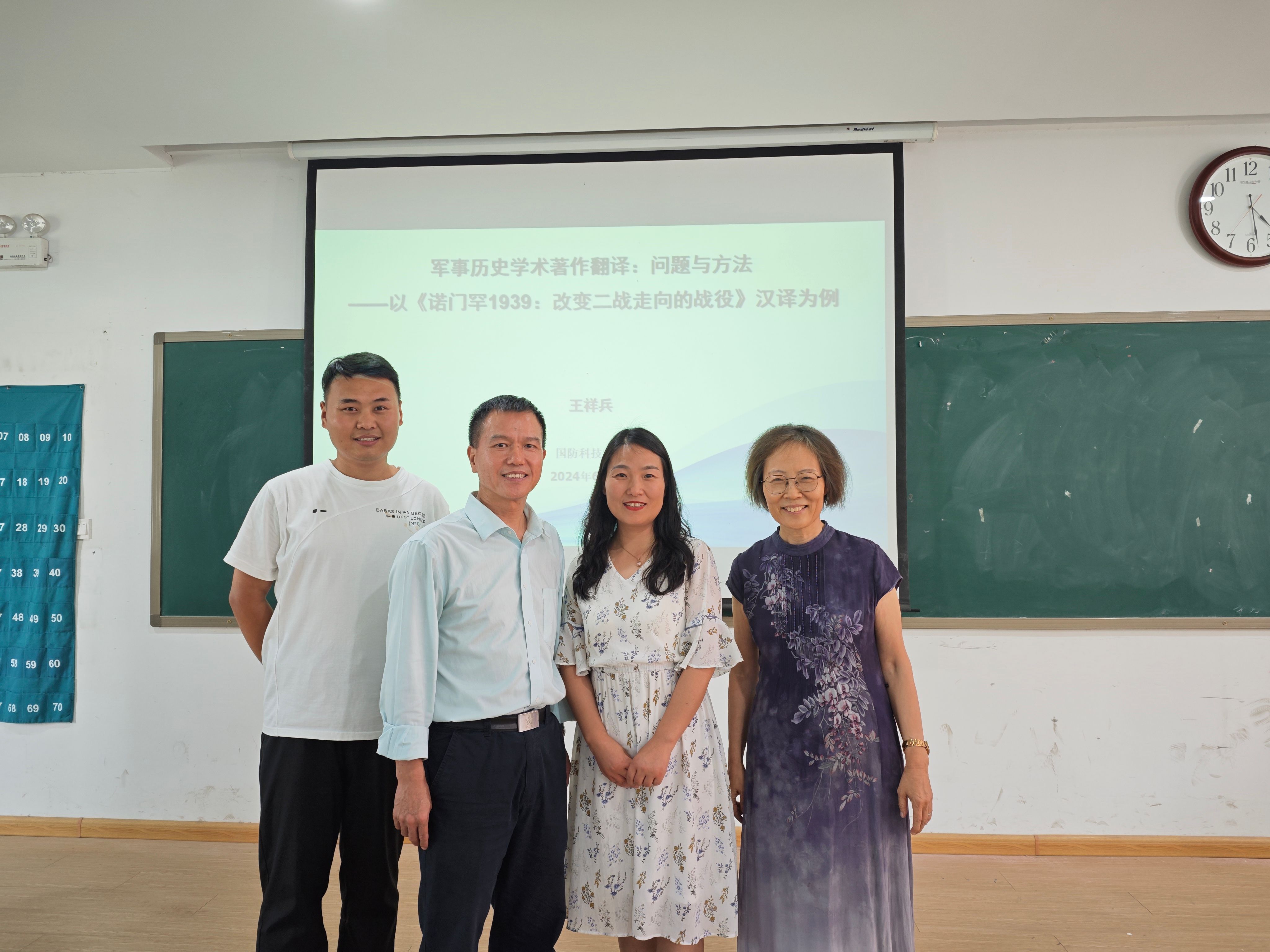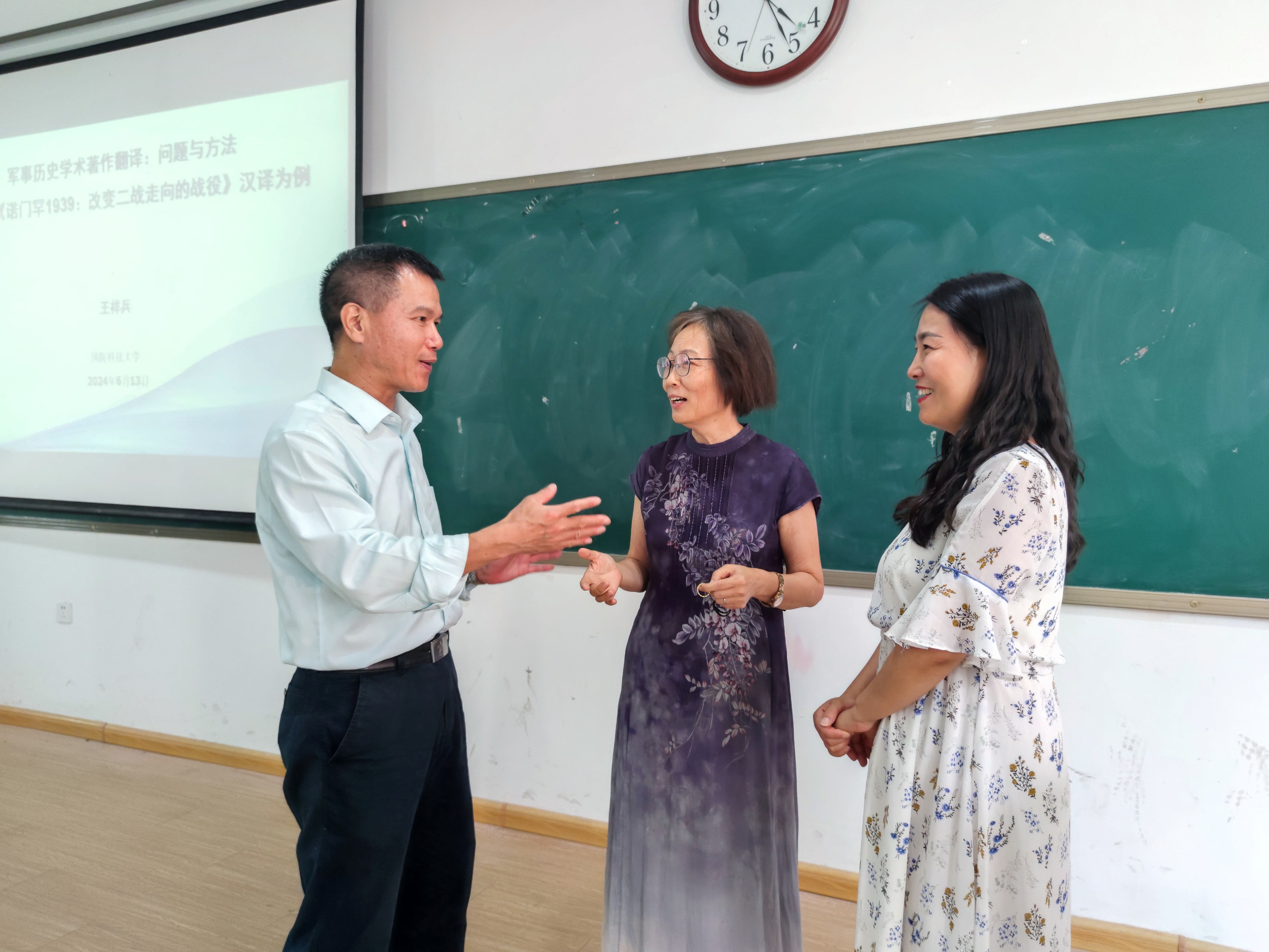 2024年6月13日高温天的下午,beats365唯一官方网站翻译教研室邀请到国防科技大学博士生导师王祥兵教授在教1楼109为翻译专业师生做了一场干货满满的讲座。讲座由翻译教研室主任张艳波副教授主持,翻译学科带头人、翻译研究所所长赵文静教授做总结。