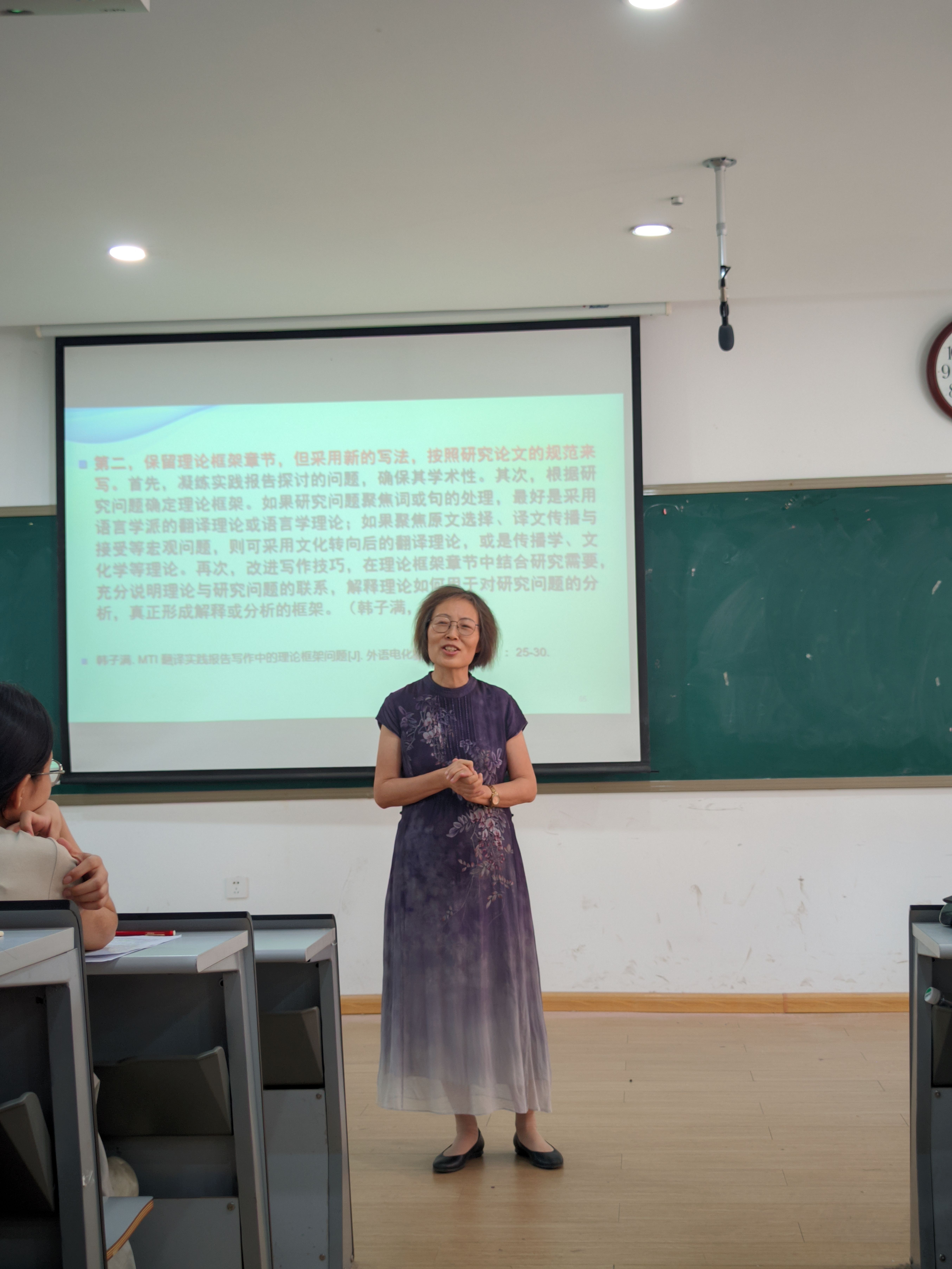 结尾处,王教授还应邀针对翻译专业员工的翻译实践报告撰写做简单讲解,比如翻译实践方向选择、实践报告语言、主体结构、理论框架等,为翻译专业员工写毕业论文排忧解难。