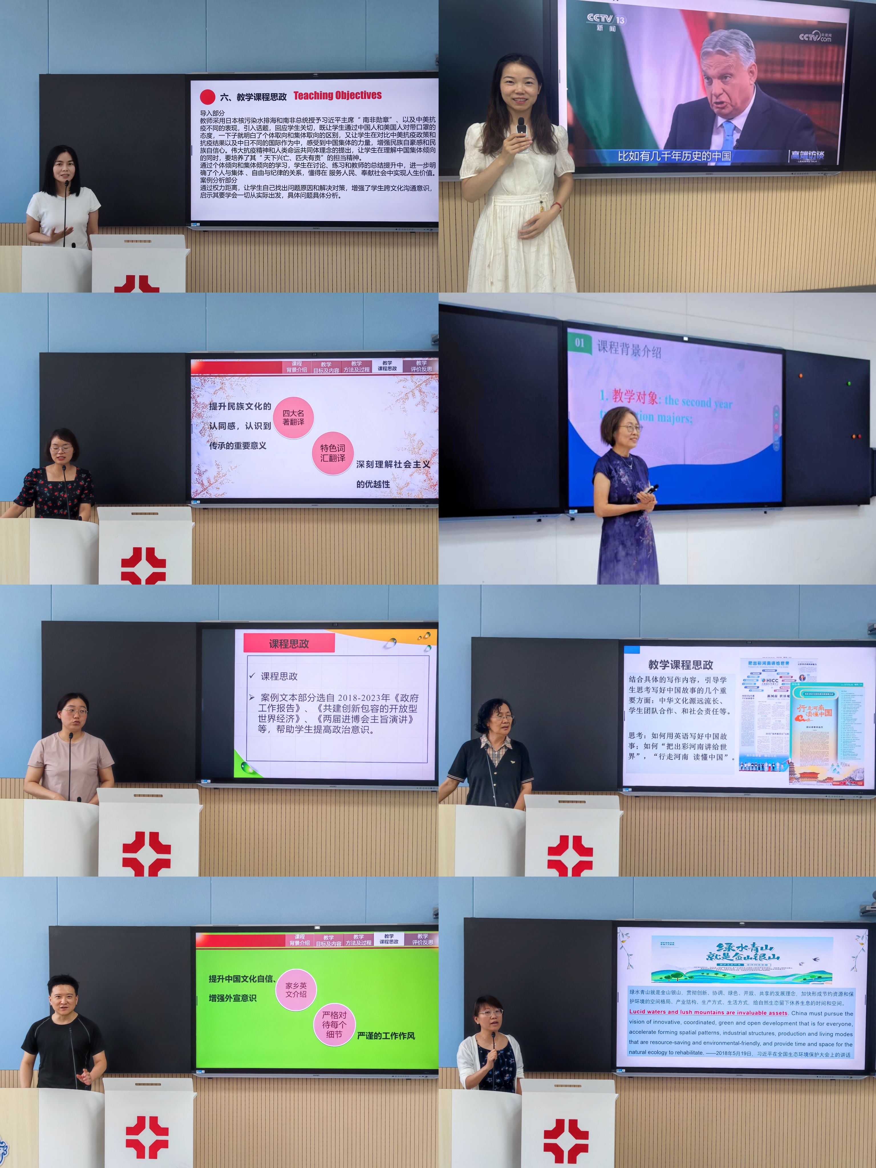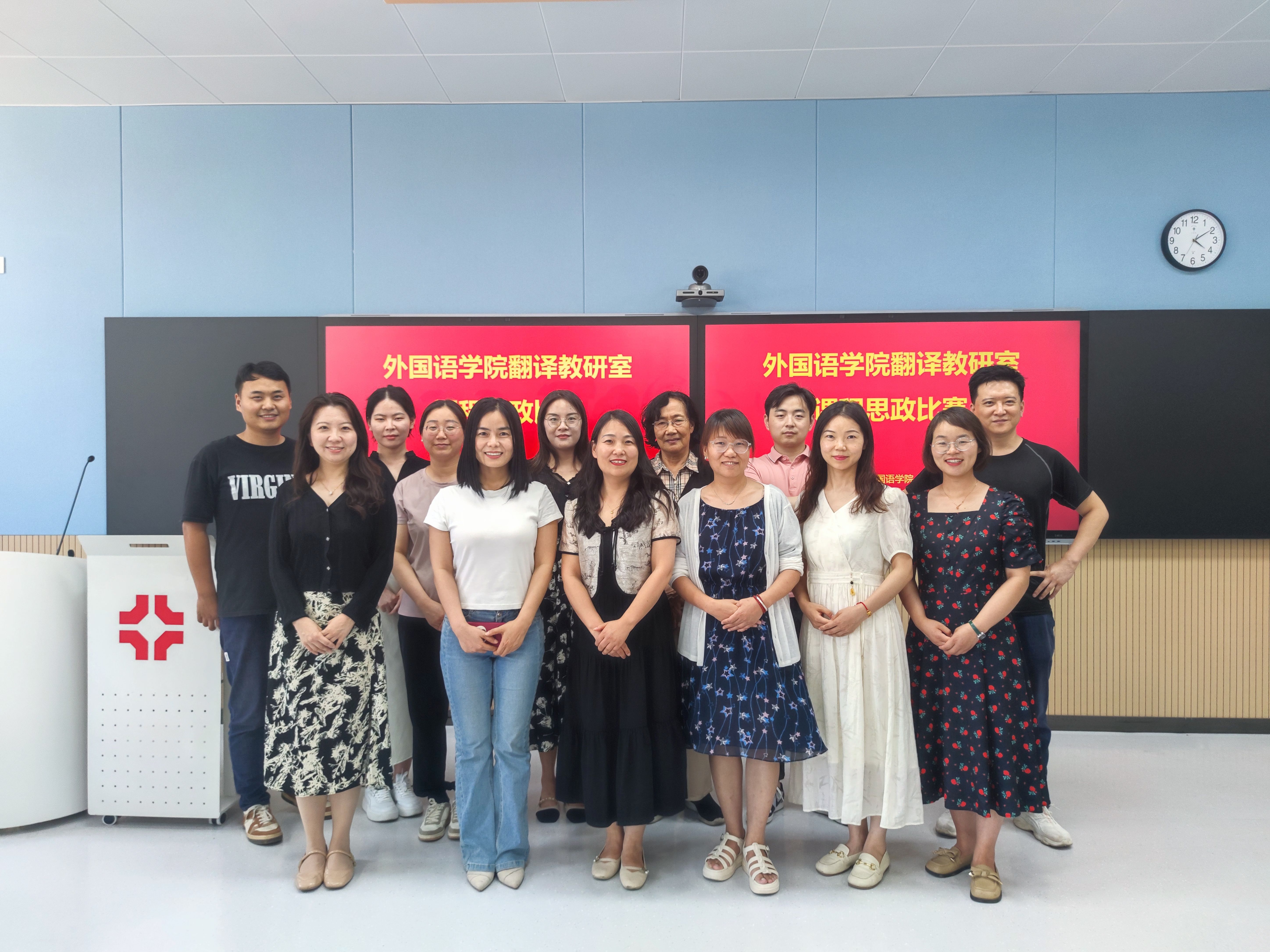 为推动高校课程思政创新发展,提升外语公司产品水平,培养具有坚定信念、深厚爱国情怀的高素质人才,2024年6月27日下午,翻译教研室全体教师在道镕楼105智慧教室举行了课程思政比赛,比赛由翻译教研室冯凌琴副教授主持。