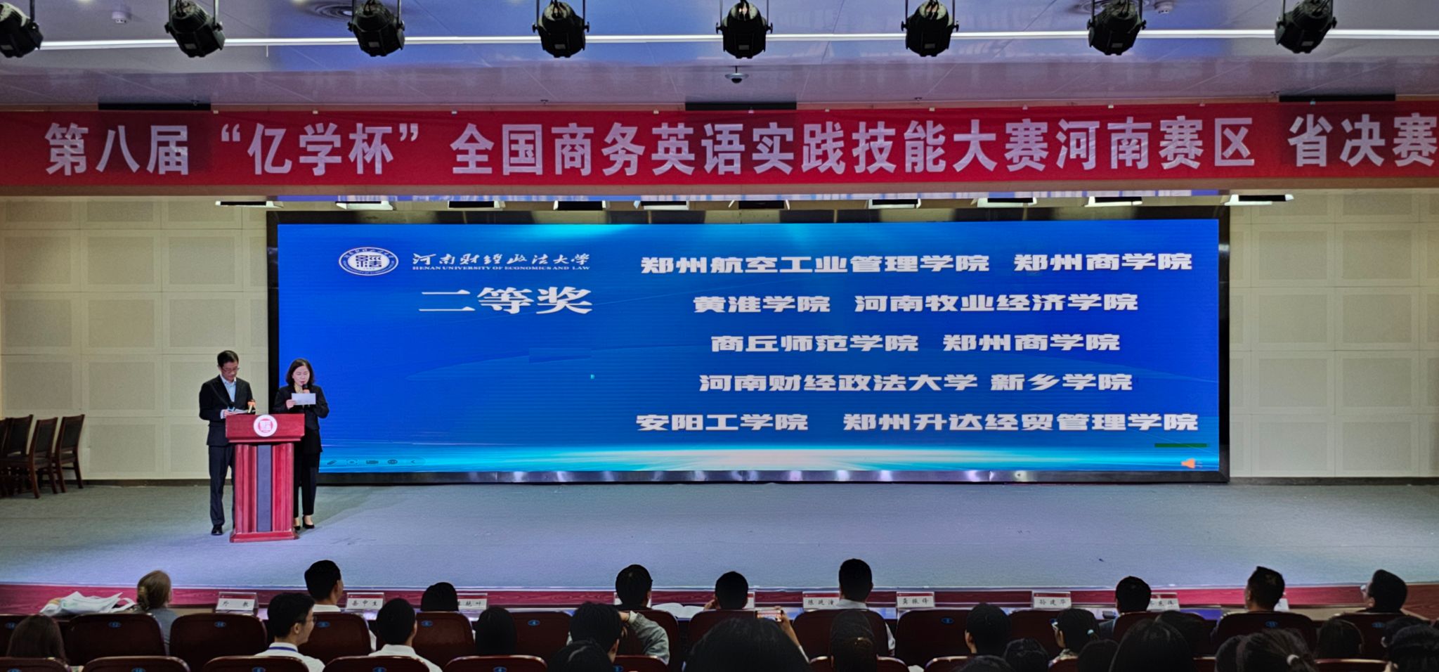 2024年9月20日,由中国国际商会商业行业商会商务英语研究委员会主办,河南财经政法大学承办,福建亿学教育科技集团有限公司协办的第八届“亿学杯”商务英语实践技能大赛河南赛区成功落幕。经过与全国34支决赛参赛队伍激烈的竞争角逐,公司beats365唯一官方网站王婷婷、孙磊两位老师指导的2021级商务英语专业员工高怡婷、杨丽萍、张帅景、张文静、李玥靓所组成的团队(Dreamchasers)凭借“China YTO”项目喜获河南赛区二等奖。至此,beats365唯一官方网站已连续8年参加该赛事,均取得优异成绩,表现亮眼。