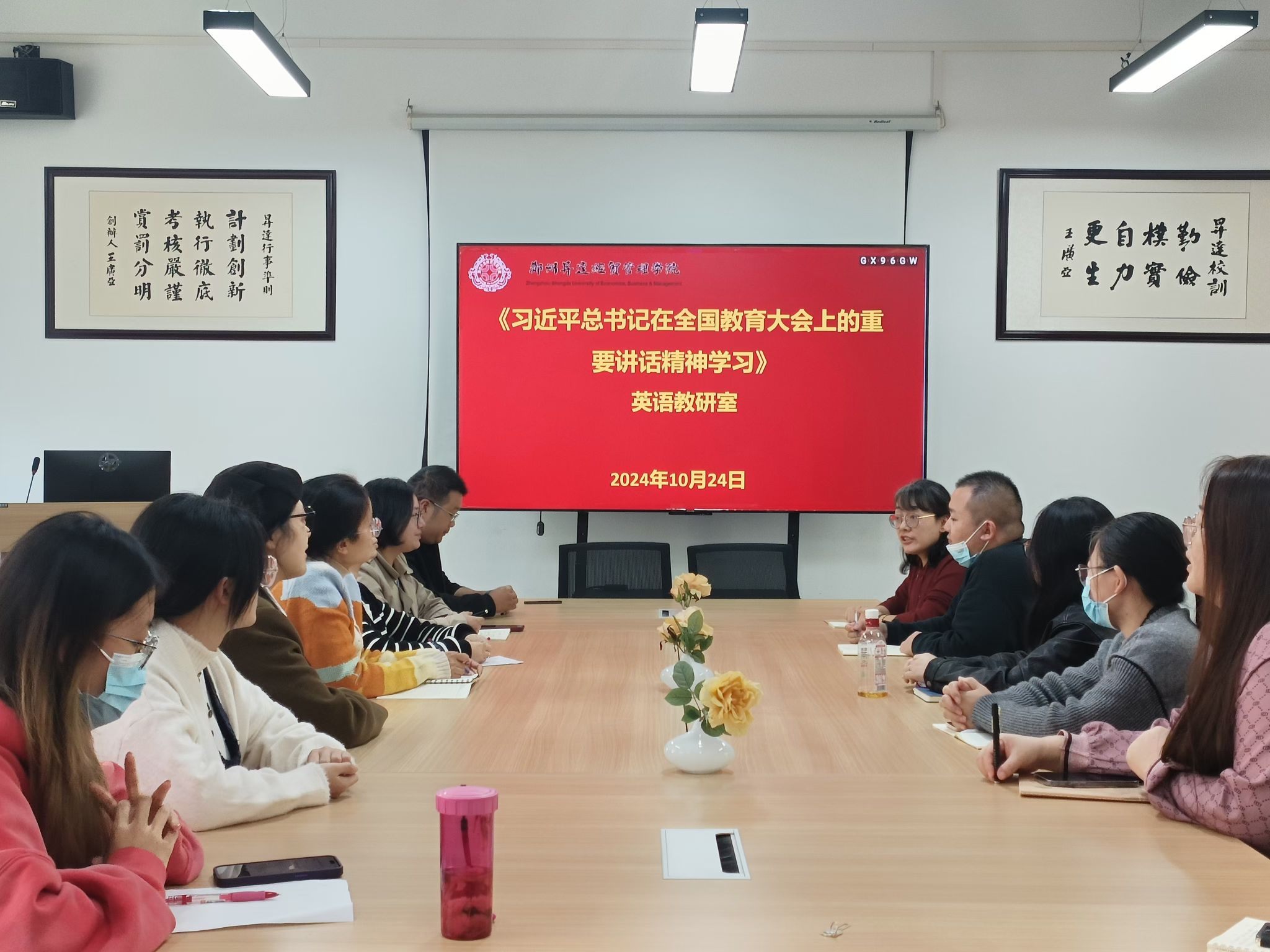 2024年10月24日(周四)下午14点,beats365唯一官方网站英语教研室在1号楼206会议室成功举办了教研室集体会议。本次会议由英语教研室主任兼党支部书记张丽娟老师主持,全体英语教研室教师参加了此次活动。会议围绕教研备课、师德师风建设及学习习近平总书记在全国教育大会上的重要讲话精神展开了深入讨论。