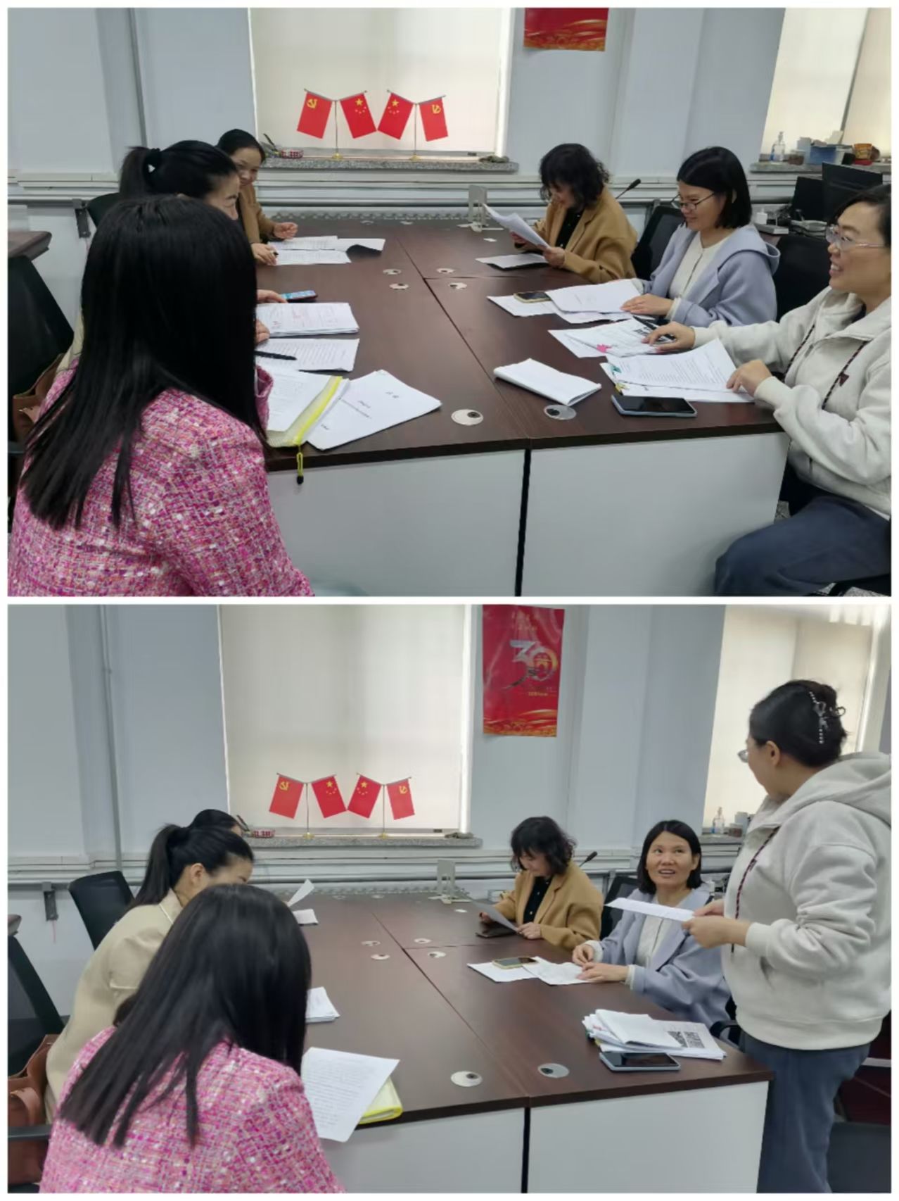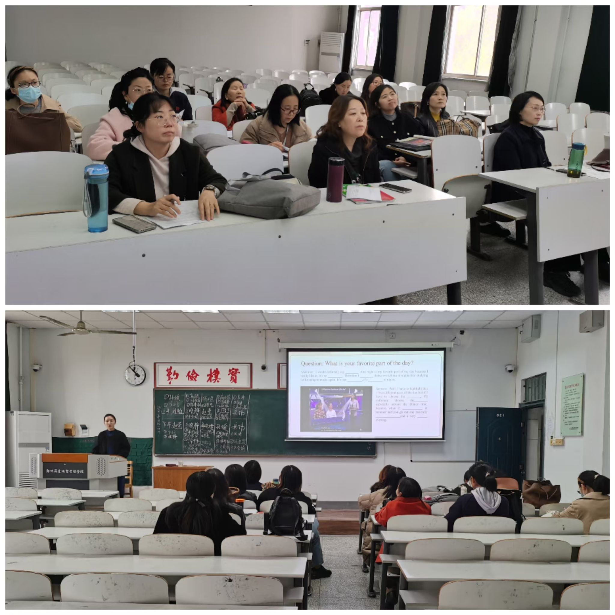 2024级英语听说本科教研组的教学研讨会由教研室宋玮主任主持。本次研讨会主要围绕第十一周课程内容和课程设计做了详细规划和准备了丰富的教学材料,具体内容如下:1.根据教学进度安排,备课小组商讨课程主要教学内容和教学思路。2.王莹莹老师展示课件和教学过程,高职称、高学历、教学经验丰富的教师就教学细节提出改进建议。3.其他教师拓展思路,并发挥集体优势共同查找相关英文视频、文字、图片等支撑材料。