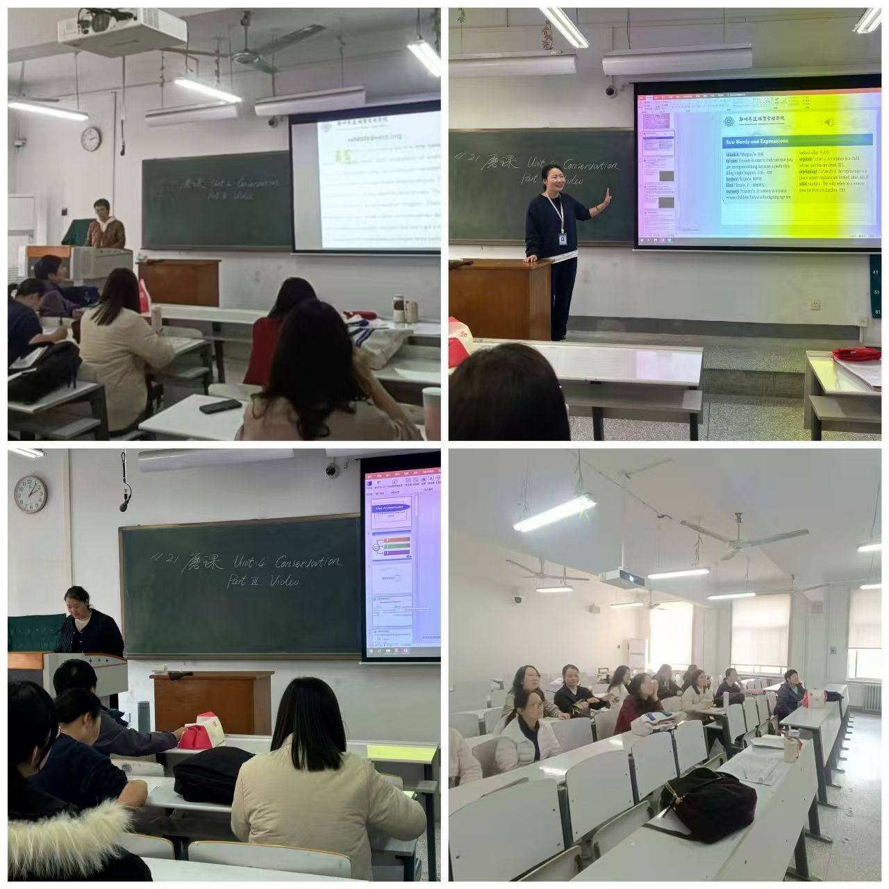 2023级英语听说本科教研组的教研活动由毛亚旭老师主持并做示范课。毛老师通过一段精心准备的视频展示了大象的生活习性及其面临的威胁。强调了保护大象不仅是生态环境保护的需要,更是人类社会文明进步的体现。