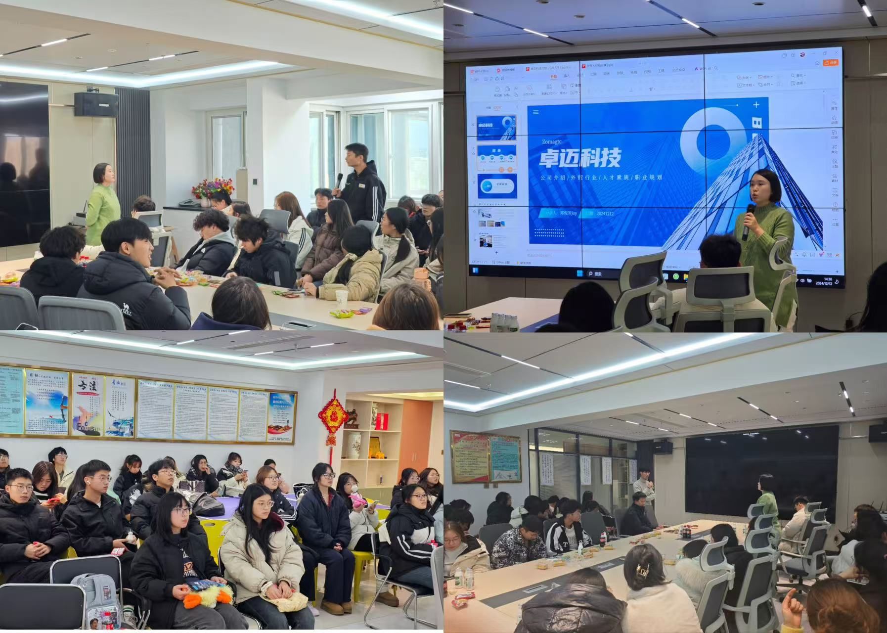 2024年12月12日及13日,2024级商务英语专业本科及专科共135名员工,在马添翼老师和孙磊老师的带领下,赴校企合作单位郑州卓迈科技有限公司进行专业认知实习,此次活动为大一员工开展专业课程学习和培养专业认同感奠定了扎实的基础。