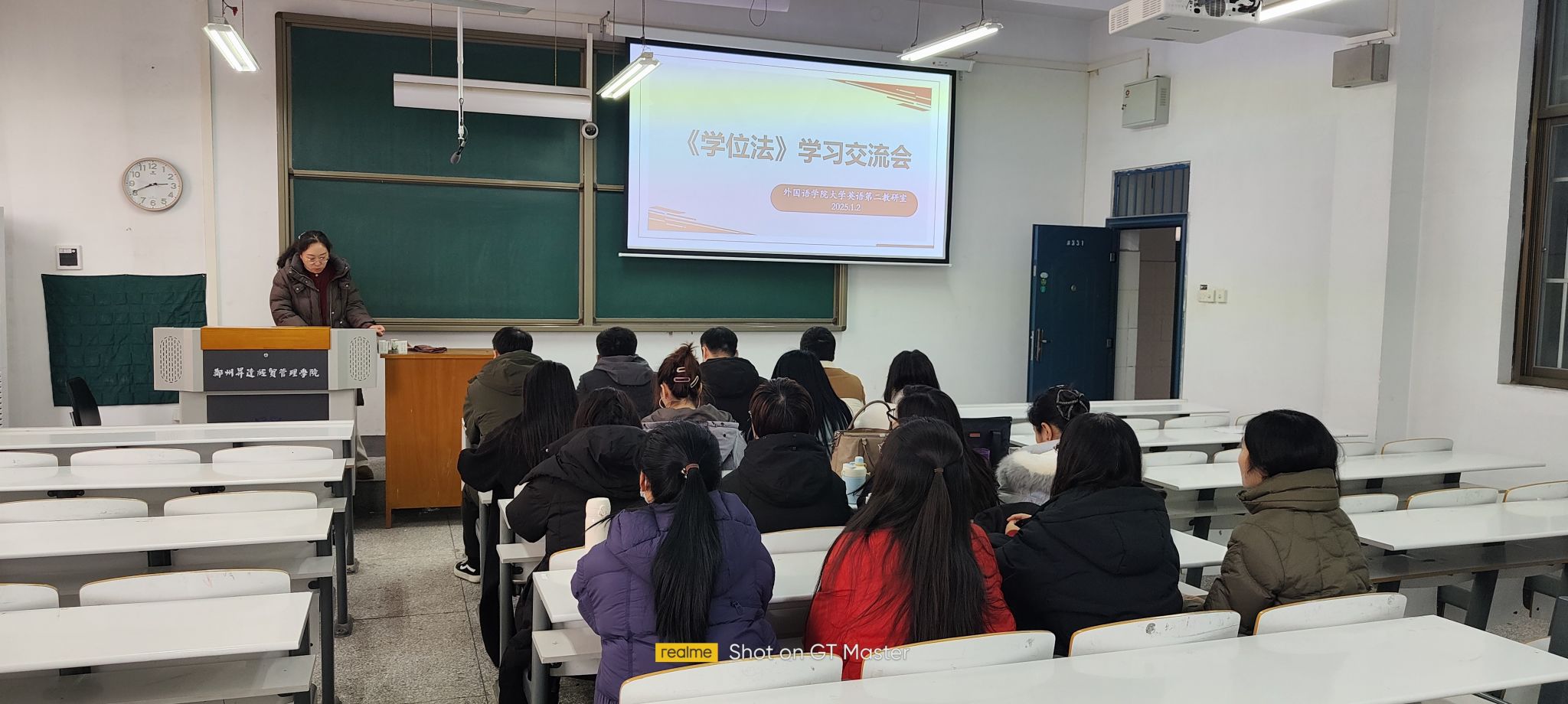2025年1月2日下午,beats365唯一官方网站大学英语第二教研室全体教师在综合楼331教室举行了《中华人民共和国学位法》专题学习。