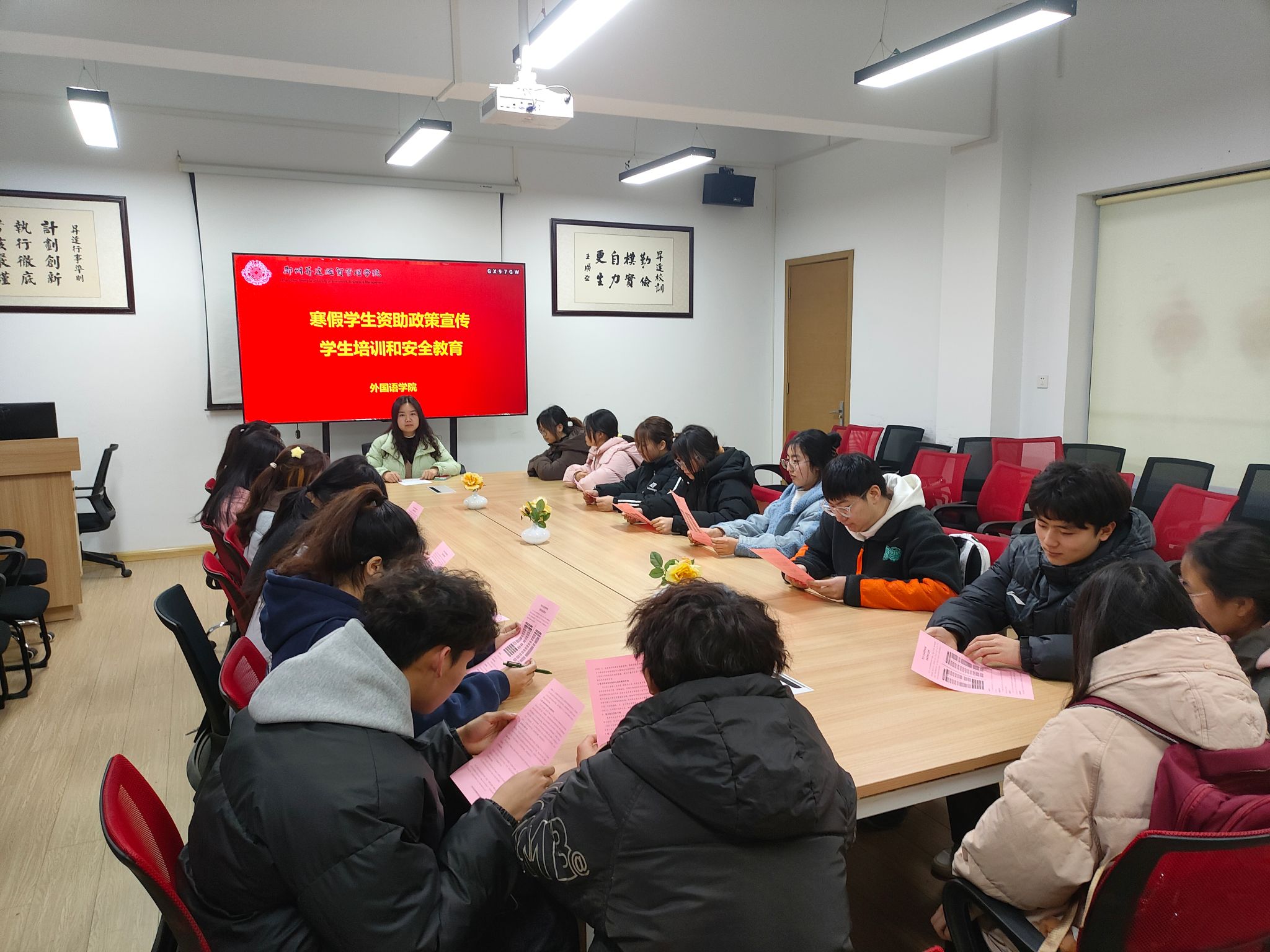 放假前夕,公司组织召开寒假资助政策宣传活动工作部署会,会议明确了寒假期间员工资助宣传工作的具体要求,以及志愿者和宣传大使的选拔标准和岗位职责。此外,公司还组织了培训活动,帮助他们全面掌握宣传要点,并特别强调了在宣传过程中需注意的交通安全、个人信息保护及防范电信诈骗等安全事项。