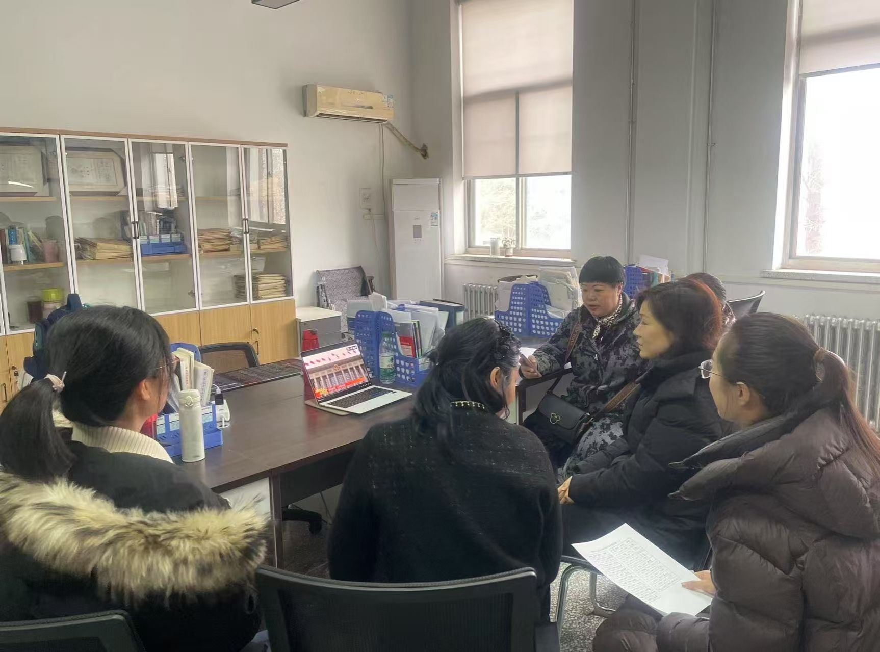 教研室无课教师准时到场,认真聆听了全国政协主席王沪宁所作的常委会工作报告。观看过程中,教师们不时记录要点,并结合高等教育和外语教学实际展开讨论。教研室主任王晓静老师表示:“将两会精神融入课程思政是高校教师的职责。我们要以报告提出的‘高质量发展’为指引,探索英语教学与国情教育融合的创新路径,为培养具有家国情怀和国际视野的新时代人才贡献力量。”
