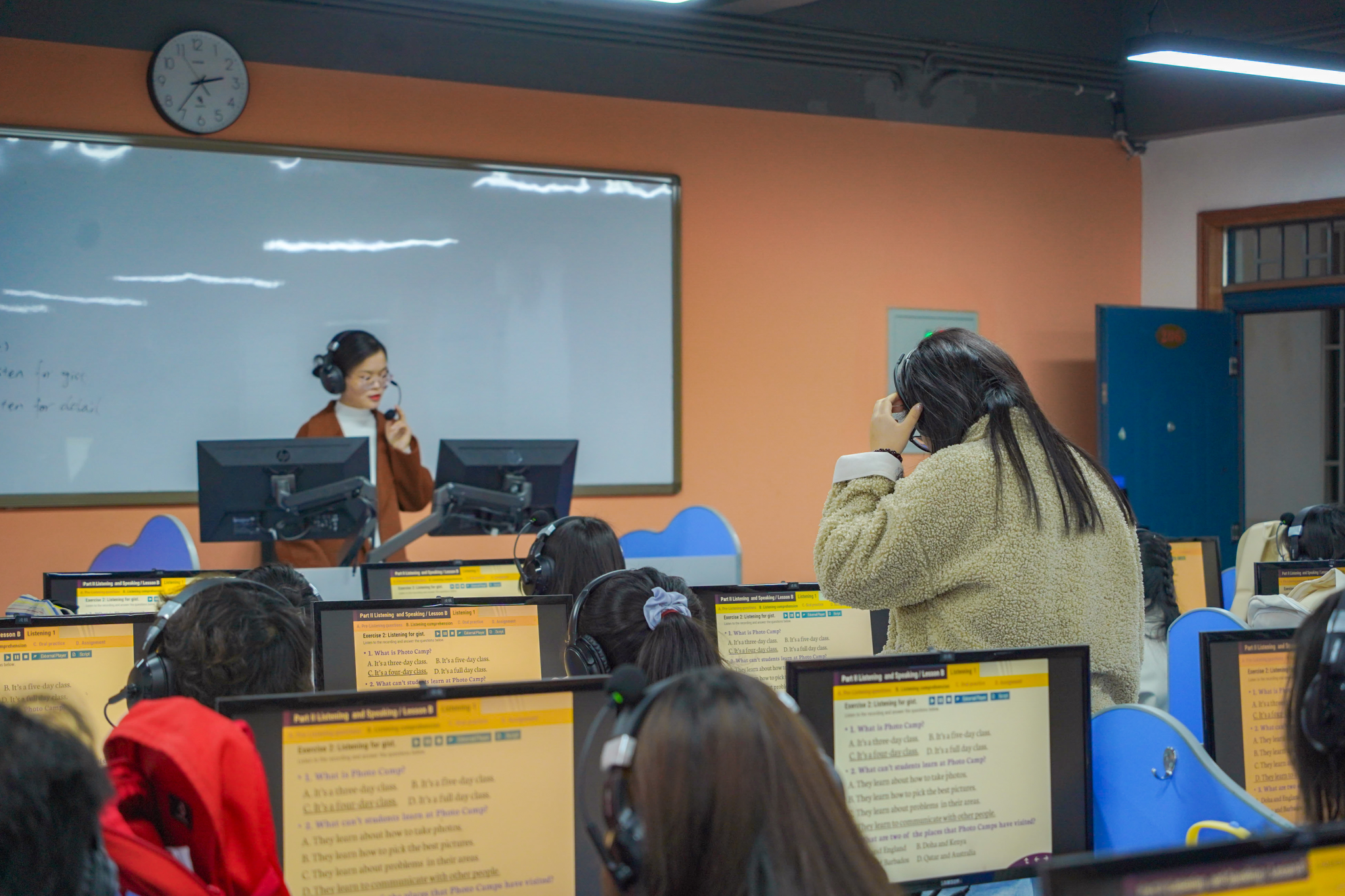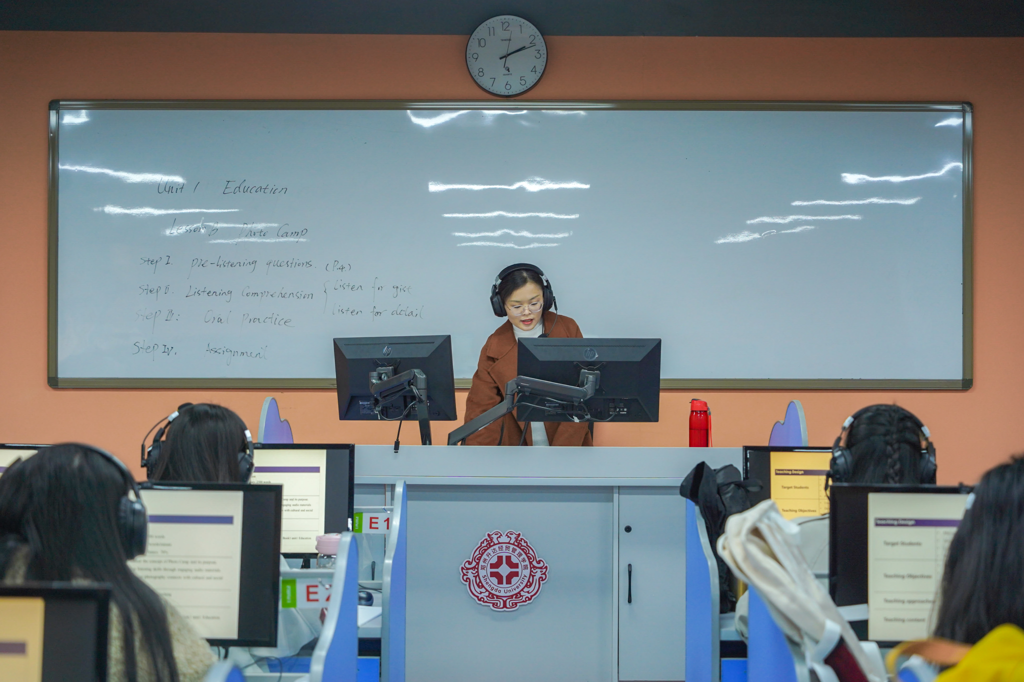 2025年3月11日下午第五节课,程静老师在实训楼B206教室开展以“Photo Camp”为主题的创新观摩课,第四教研室部分专任及教学督导组成员参与听课。此次课程以《新进阶大学英语视听说》第二册Unit One Education为依托,通过“法学案例影像化”教学策略,将语言教学与法学专业特色深度融合。