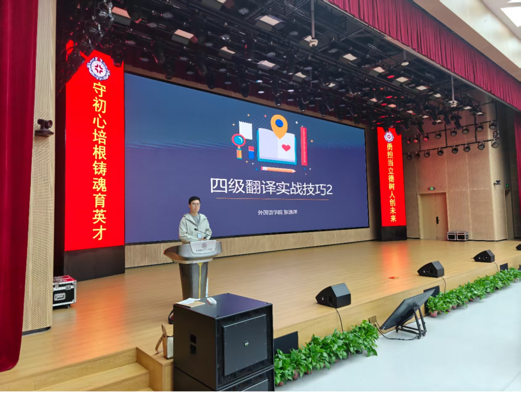 讲座现场座无虚席,气氛热烈。张老师的生动讲解和实用技巧深受同学们欢迎,现场互动频繁,许多同学积极提问,围绕翻译难点与张老师探讨解题思路。不少同学表示,通过此次讲座,他们对四级翻译部分的题型和考察重点有了更深入的理解,也掌握了有效的备考策略,对即将到来的考试更具信心。