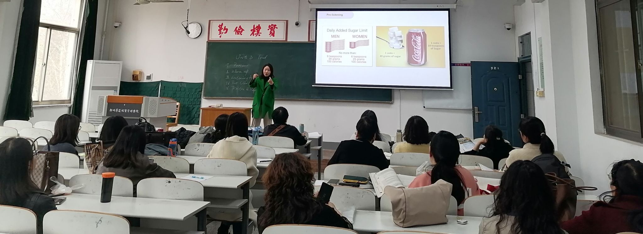 刘露老师通过"五感教学法"解析饮食主题,设计分层听力任务。创新性融入"健康中国2030"思政案例,结合国家倡导的体重管理年与员工讲解糖分过量的危害,实现知识传授与价值引领双目标。