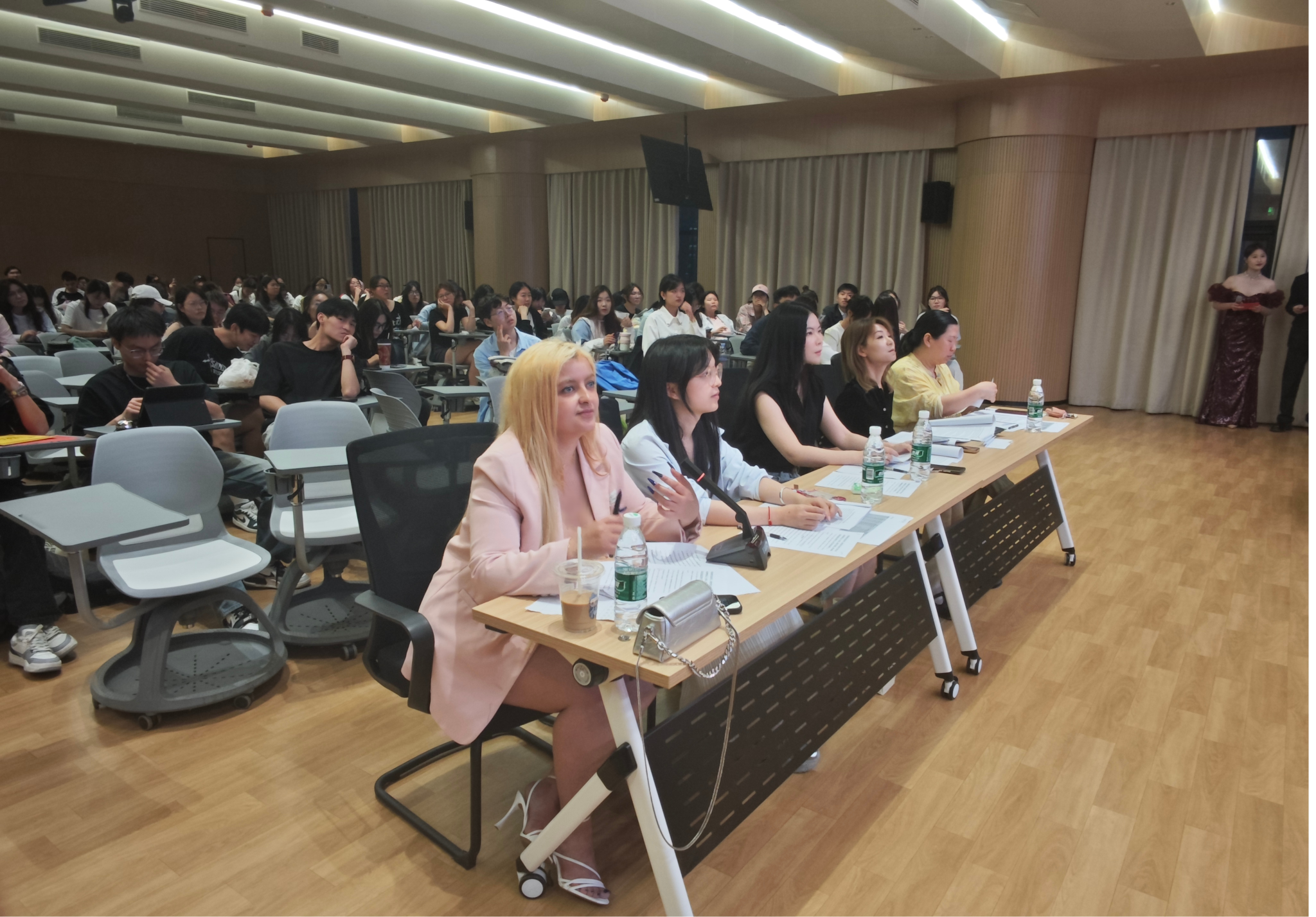 外籍教师Diana和商务英语教研室主任张华嵩老师做了精彩点评,他们分别对选手们的精彩表现给予了肯定,并对选手们在各方面如语音语调、回答问题流畅度等各方面提出了建议。同时,希望看到同学们未来更精彩的表现和突破。