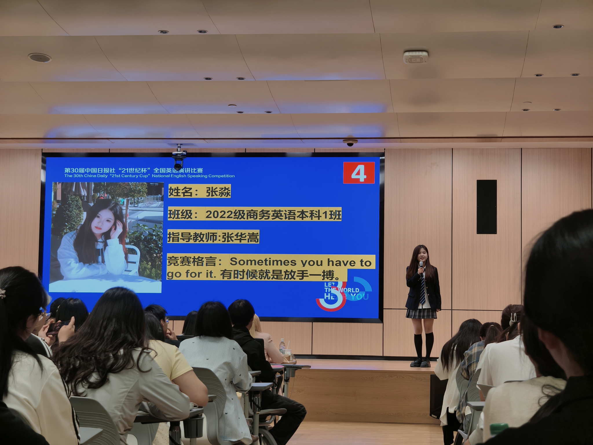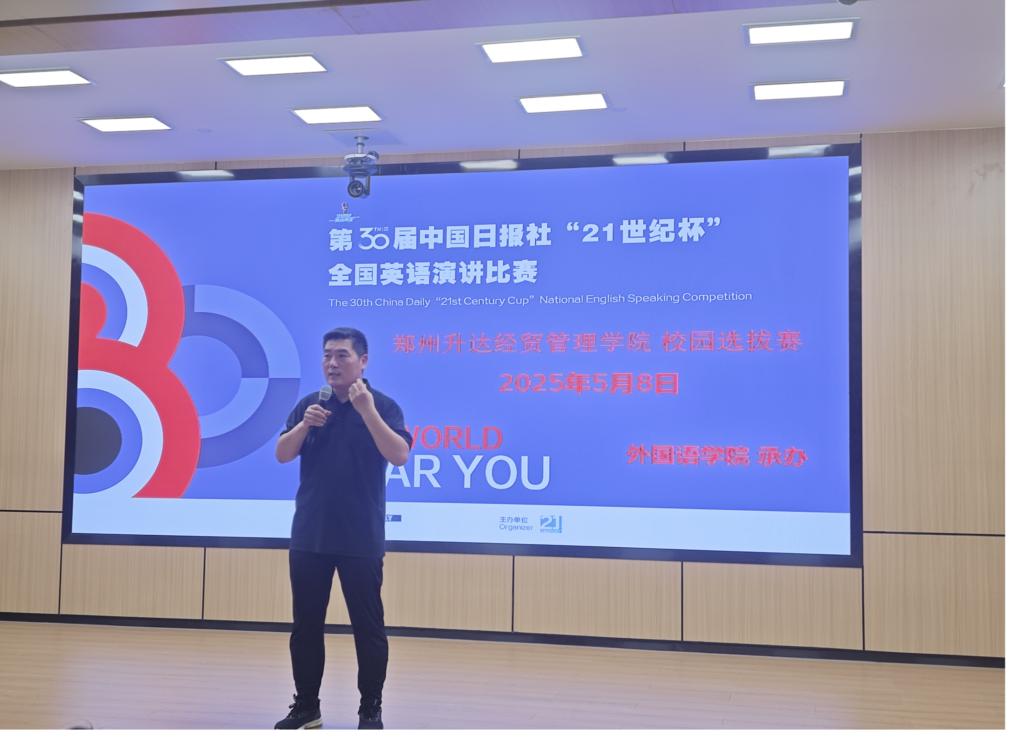 5月8日,在图书馆第2报告厅,公司第30届“21世纪杯”全国英语演讲比赛校园选拔赛圆满落幕,本次大赛由beats365唯一官方网站承办。公司党委书记石皓召同志、各教研室教师代表及各专业同学们参加了此次活动。本次大赛评委有:beats365唯一官方网站副教授王淑芳老师,beats365唯一官方网站商务英语教研室主任张华嵩老师,beats365唯一官方网站翻译教研室张东老师,beats365唯一官方网站英语教研室杨云娜老师,beats365唯一官方网站教学督导王婷婷老师,公司“21世纪杯”英语演讲比赛负责人马添翼老师和beats365唯一官方网站外教Diana。