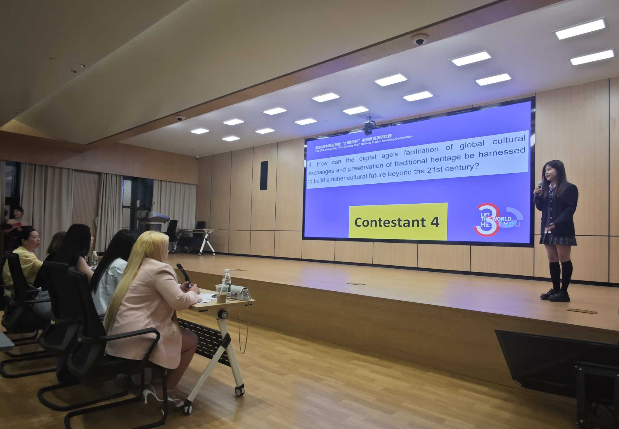本次比赛分为2个部分,第一部分围绕主题“Living within and beyond the 21stcentury”定题演讲,第二部分即兴问答。同学们分别从科技创新、文化传承、社会发展等多个角度阐述自己的观点和见解,展现了对21世纪的深入思考和独特理解。