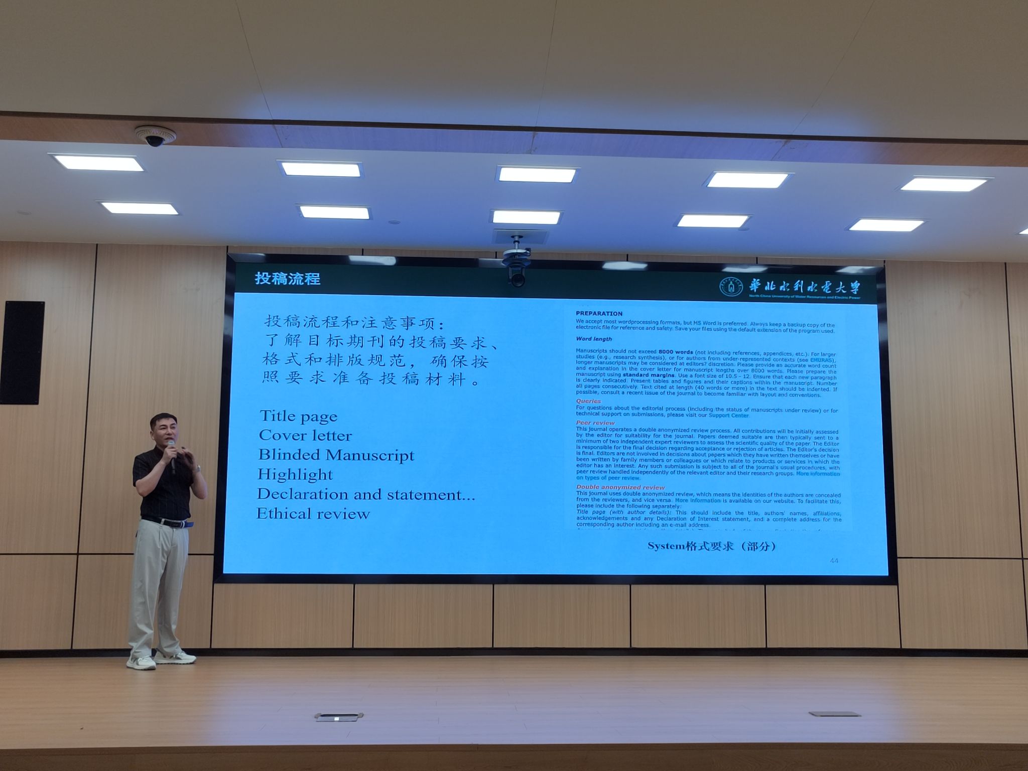2025年5月15日下午,华北水利水电大学beats365唯一官方网站副教授、南京师范大学beats365唯一官方网站硕士生导师王永亮博士,应beats365唯一官方网站邀请于图书馆二楼报告厅开展了一场题为“应用语言学领域国内外权威学术期刊的选题、写作和发表:编辑与外审专家的视角”的学术讲座。讲座由贺光辉副教授主持,beats365唯一官方网站经理王莉莉教授及beats365唯一官方网站全体教师聆听了讲座。
