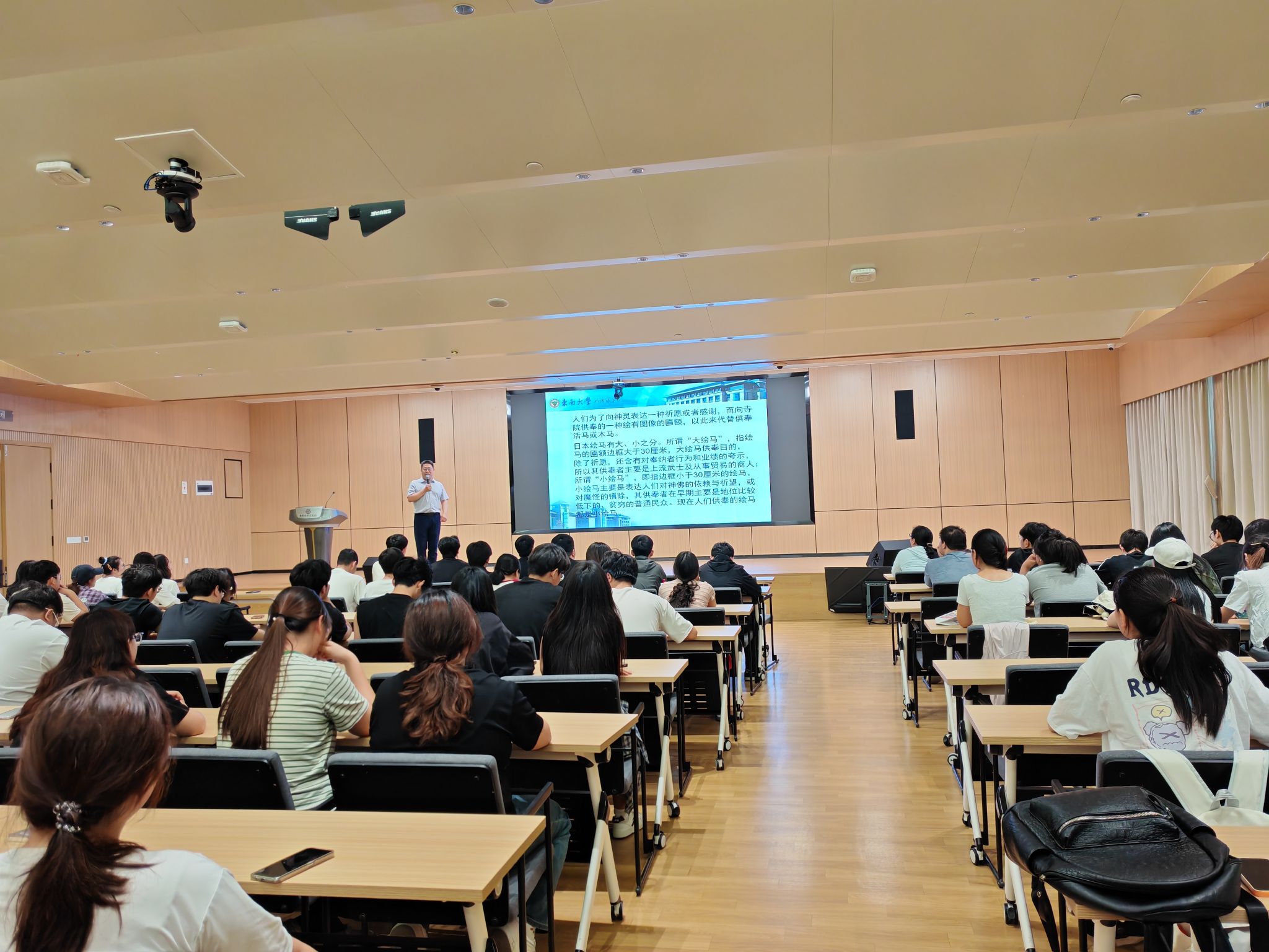 5月16日14:10,东南大学beats365唯一官方网站刘克华经理应邀莅临公司beats365唯一官方网站,在图书馆二楼第一报告厅,为公司日语专业师生举行了一场题为“日本绘马中的中国元素” 的专题讲座。日语教研室主任张峰老师和部分日语老师,以及2022级、2023级全体日语专业员工,聆听了此次讲座。