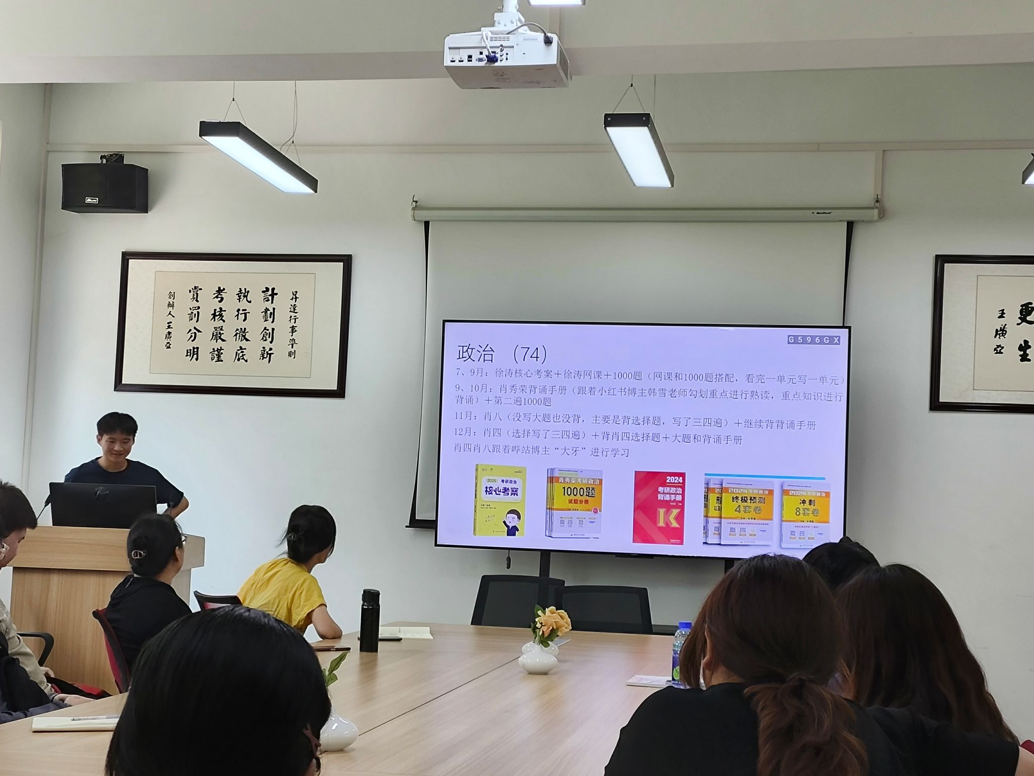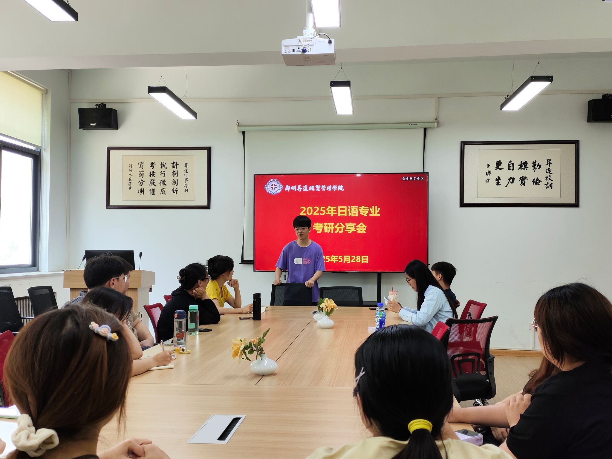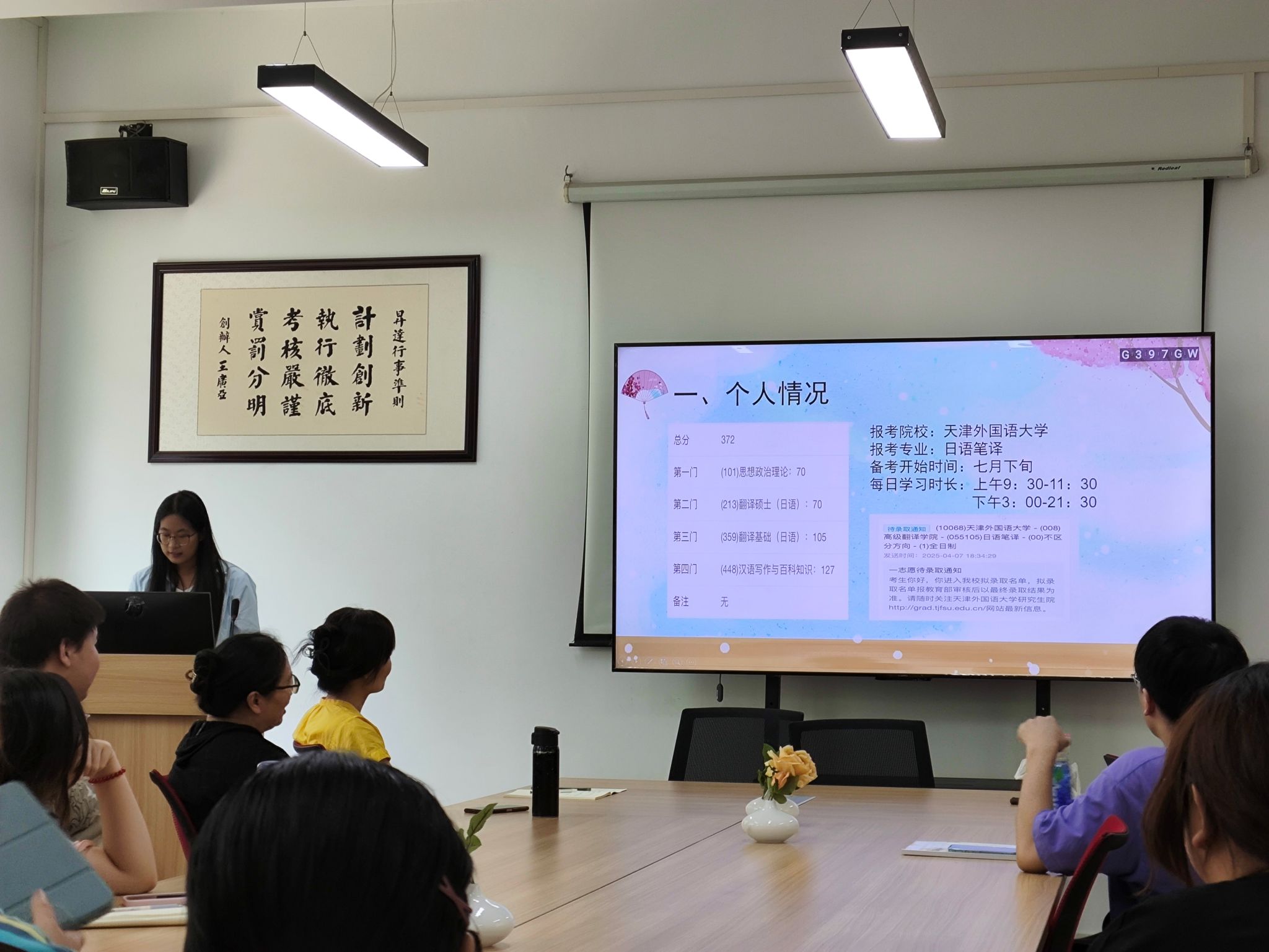 5月28日中午,日语教研室在教学一号楼206会议室举办2025 年度考研经验分享会。本次活动邀请到黄倩倩、马昕慧、徐龙雨、张雨寒四位成功考研上岸的同学分享备考心得,活动由日语教研室主任张峰老师主持,日语专业带头人张宝红老师到场为在校生加油鼓劲。