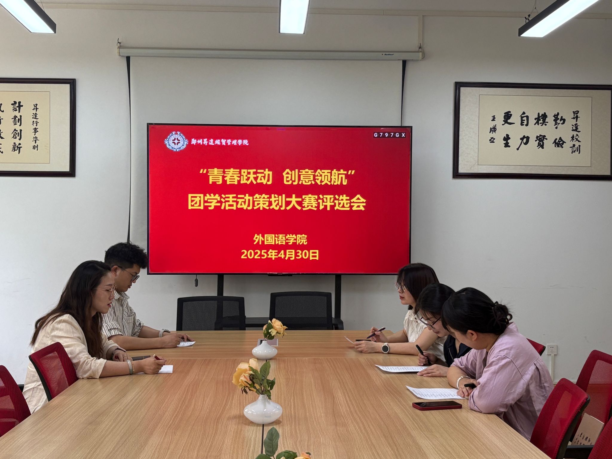 4月30日,大赛评审会在公司会议室顺利举行。由院团委书记丁玥老师、院团委副书记武珍毅老师,以及王彬老师、胡颖慧老师、张媛媛老师、贾佳星老师组成的评审团,对参赛作品进行了全面、细致的评审。评审过程中,评委们从策划方案的创新性、可行性、内容丰富度、逻辑严谨性等多个维度进行综合考量,秉持公平、公正、公开的原则,对每一份作品进行打分与点评,最终确定了入围决赛的优秀作品名单,为大赛的后续环节奠定了坚实基础。