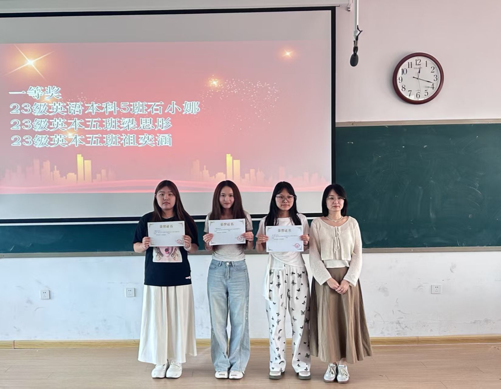 一等奖:23 级英语本科 5 班 石小娜、梁思彤、祖奕涵