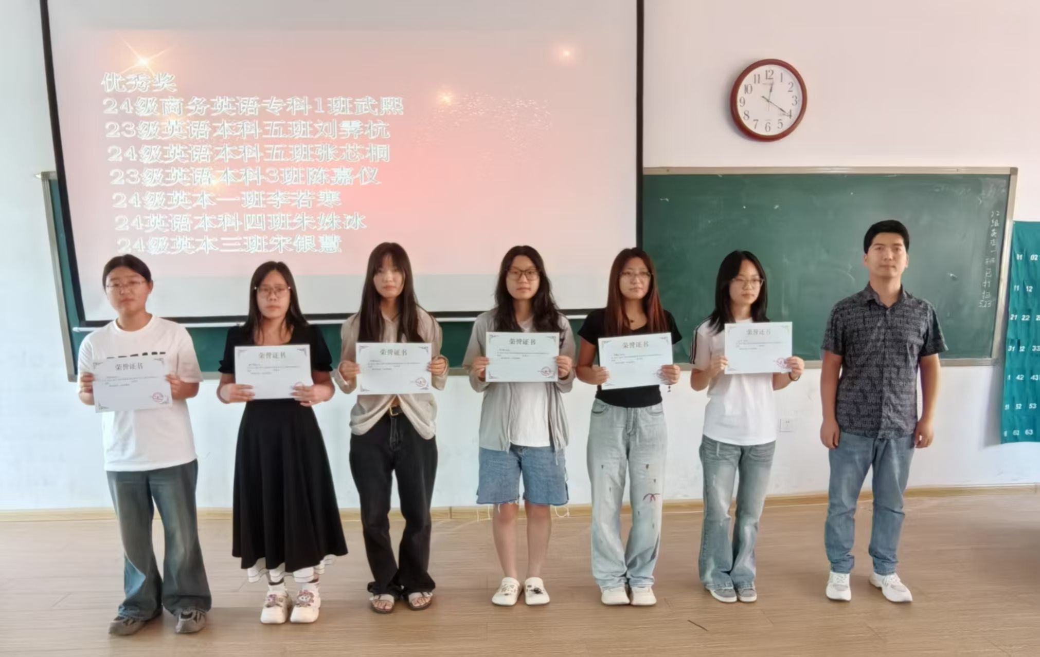 优秀奖:24 级商务英语专科 1 班 武熙、23 级英语本科五班 刘霁杭、24 级英语本科五班 张芯桐、23 级英语本科 3 班 陈嘉仪、24 级英本一班 李若寒、24 英语本科四班 朱姝冰、24 级英本三班 宋银慧