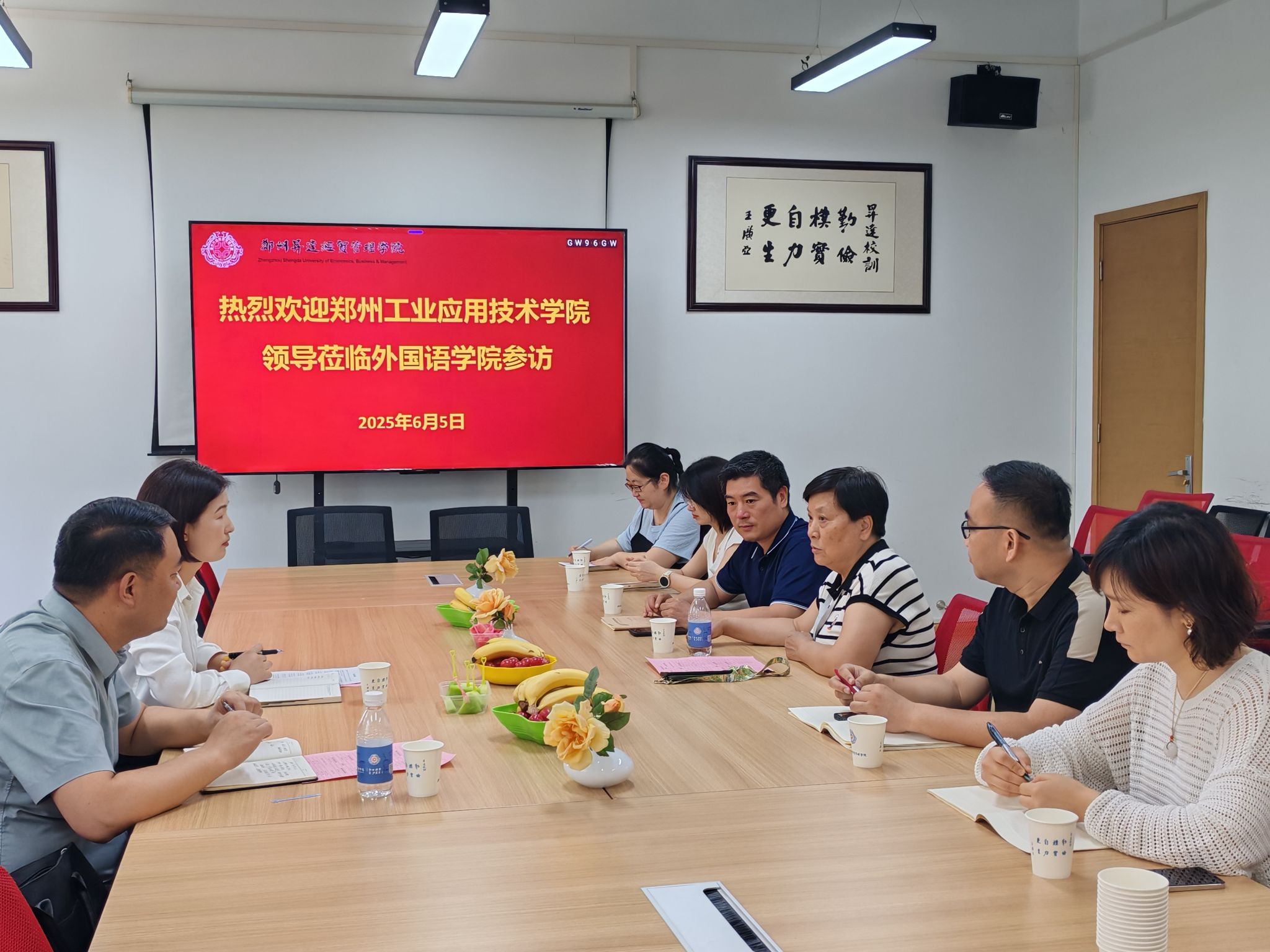 2025年6月5日上午,郑州工业应用技术公司beats365唯一官方网站孙丽娟经理、国际处郑晓航处长一行两人莅临beats365唯一官方网站进行参访交流。本次活动旨在搭建校际交流平台,分享教学质量监督、教学实践以及员工四六级考试备考等方面的经验,共同推动外语教育高质量发展。公司领导班子及骨干教师在教1-206会议室热情接待来访嘉宾并进行深入交流。