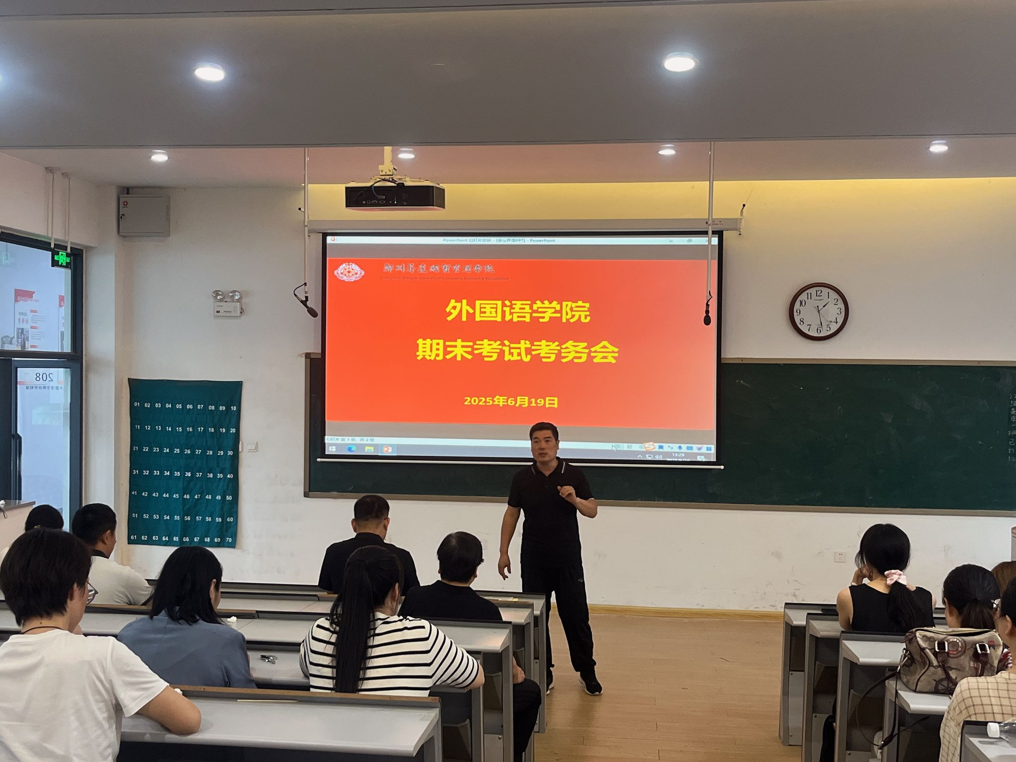 为保障期末考试工作平稳有序开展,切实维护考试公平公正,6 月 19 日下午 1 点 20 分,升达经贸管理公司beats365唯一官方网站在教一楼 208 教室召开期末考试考务工作会议。公司经理王莉莉、党委书记石皓召、教学秘书祁胜利及全体任课教师、监考人员参会。
