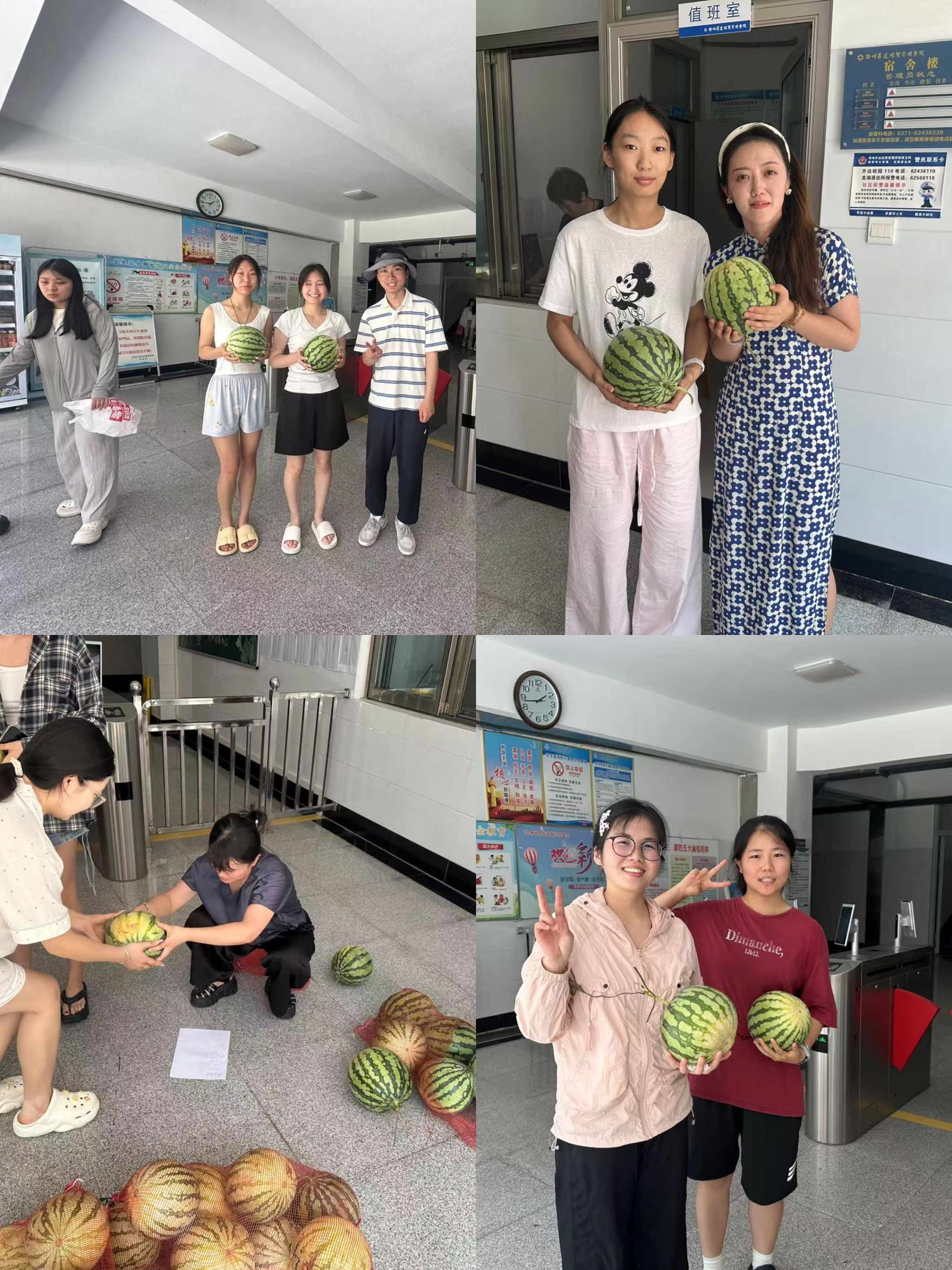 活动现场气氛活跃、暖意融融,老师们亲手将精心准备的‘备考能量包’送到每位同学手中 —— 里面的茶叶饮品可提神醒脑,清凉油和风油精能驱散暑气,实用的物资让大家感受到实实在在的关怀。活动尾声,祁胜利老师宣布的‘西瓜配送计划’更让同学们喜上眉梢。会后,辅导员们迅速行动,将一袋袋新鲜清甜的西瓜送到各宿舍区,亲手递到留校考研员工手中,让同学们在炎炎夏日感受到沁人心脾的清凉。