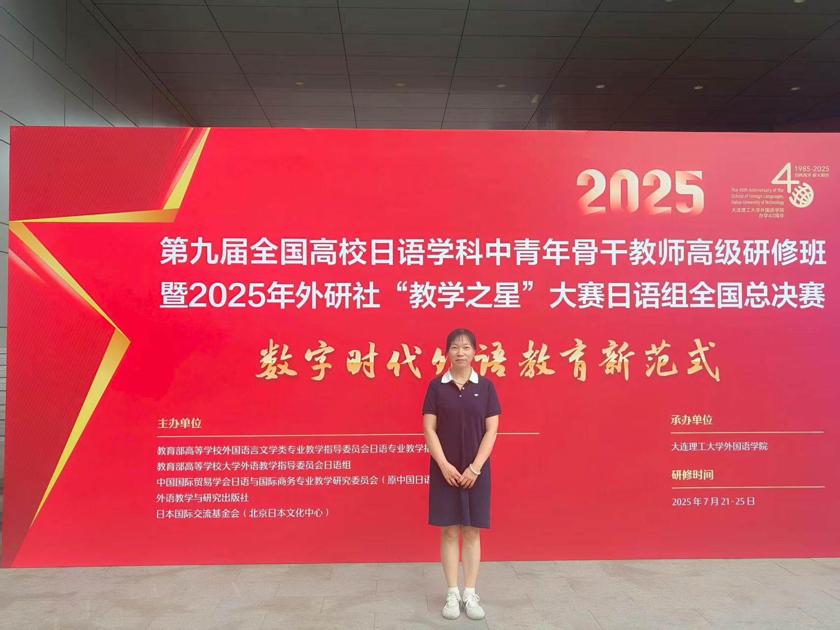 2025年7月21至25日,由教育部高等公司外国语言文学类专业教学指导委员会日语分委员会、教育部高等公司大学外语教学指导委员会日语组、中国国际贸易学会日语与国际商务专业教学研究委员会(原中国日语教学研究会)、外语教学与研究出版社、日本国际交流基金会(北京日本文化中心)共同主办,大连理工大学beats365唯一官方网站承办的第九届全国高校日语学科中青年骨干教师高级研修班在大连顺利举办。200余位来自全国各高校日语学科的专家、中青年骨干教师齐聚一堂,共同探讨数字化背景下教学创新路径,商讨日语学科人才培养新方向。beats365唯一官方网站日语教研室选派洪艳荣老师参加了此次高级研修班。