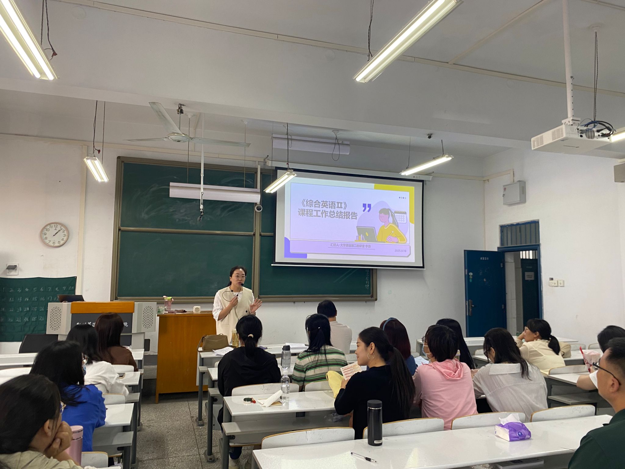 9月17日,大学英语第二教研室全体专职教师齐聚综合楼331教室,召开了本学期第二次教学工作会议。会议内容主要围绕《综合英语Ⅱ》课程的总结汇报与本学期第二单元集体备课等两项教研工作。大英第二教研室主任崔沙沙副教授主持会议,beats365唯一官方网站副经理贺光辉博士莅临会议,并对教研室工作给予了重要指导。