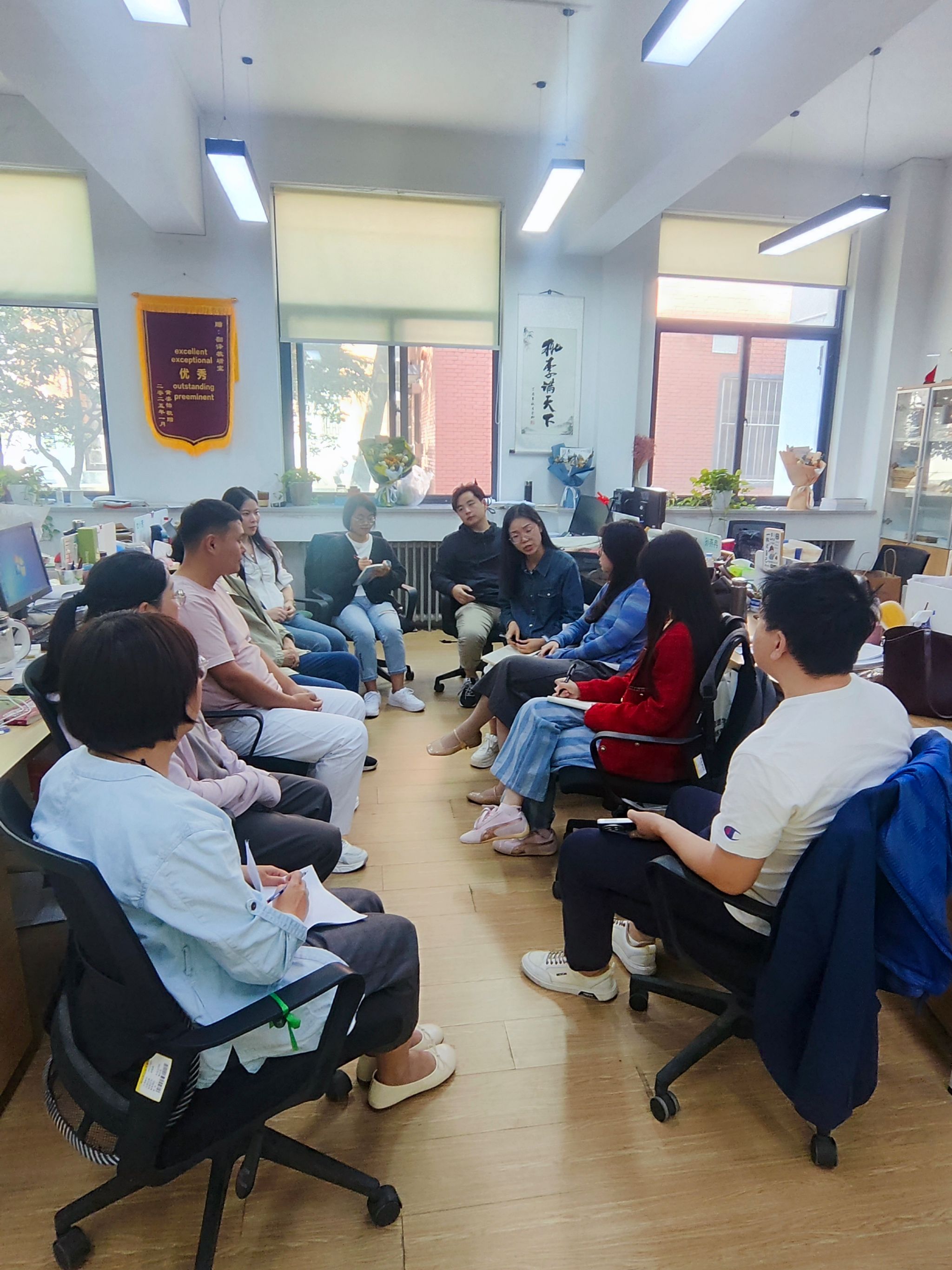 考研备考指导工作是会议另一重点。考虑到不少员工有报考翻译硕士的需求,老师们分析了近年翻译硕士招生趋势,指出院校选择需结合员工英语基础、专业优势及职业规划,避免盲目跟风;备考方面,建议员工从词汇积累、翻译技巧训练、百科知识拓展三方面发力,助力员工明确备考方向。