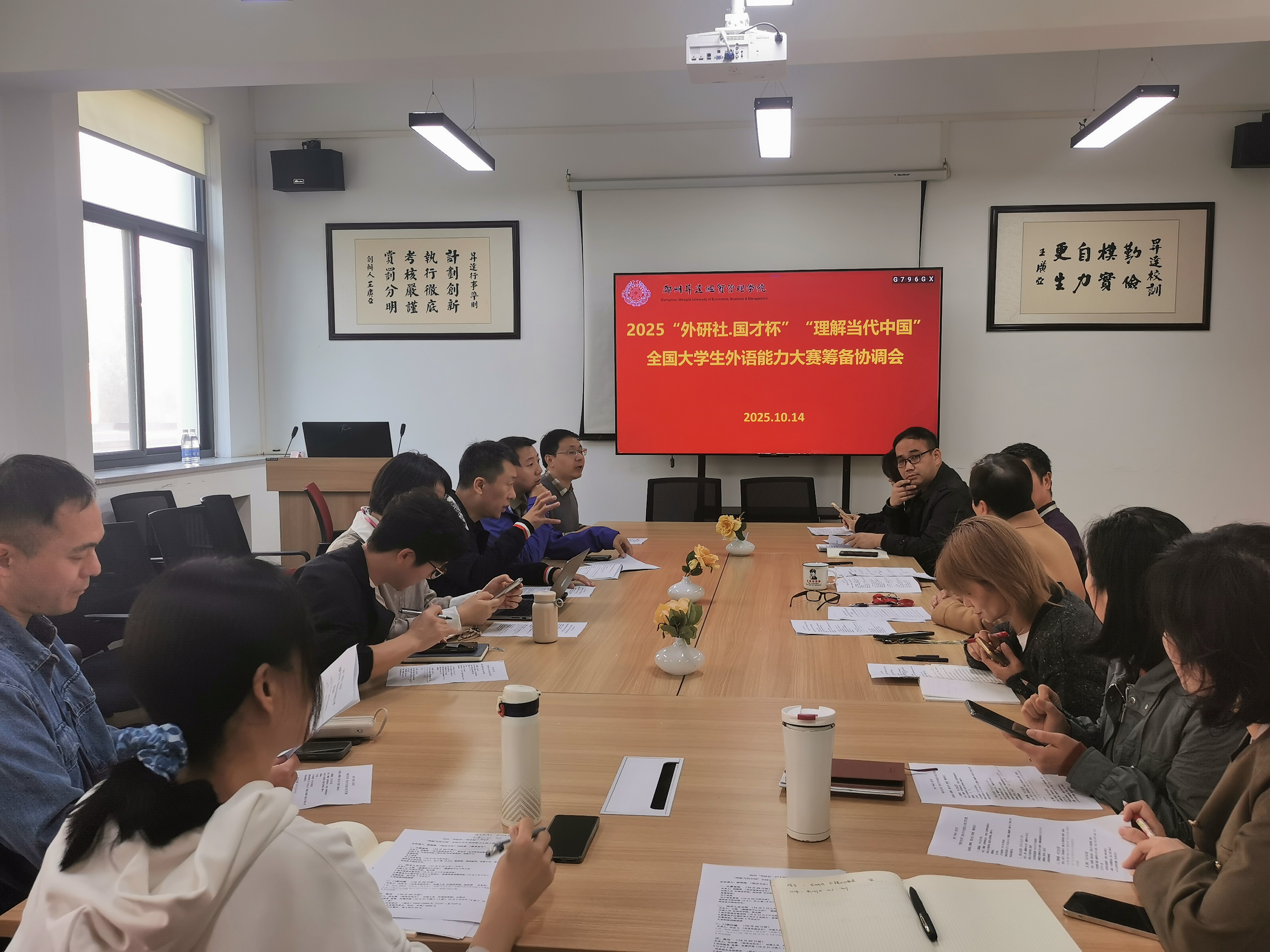 2025“外研社·国才杯”“理解当代中国”全国老员工外语能力大赛,综合能力赛项、笔译赛项、口译赛项省赛河南赛区复赛,由河南省教育厅、外研社主办,beats365唯一官方网站承办。为了赛事顺利举办,10月14日上午9时30分至11时30分,beats365唯一官方网站在教学1号楼206会议室召开赛事筹备会。会议由beats365唯一官方网站经理王莉莉主持,“外研社·国才杯”大赛组委会代表与公司赛项筹备工作领导小组成员共同参会,围绕赛事组织、场地安排、技术支持等细节进行深入交流。
