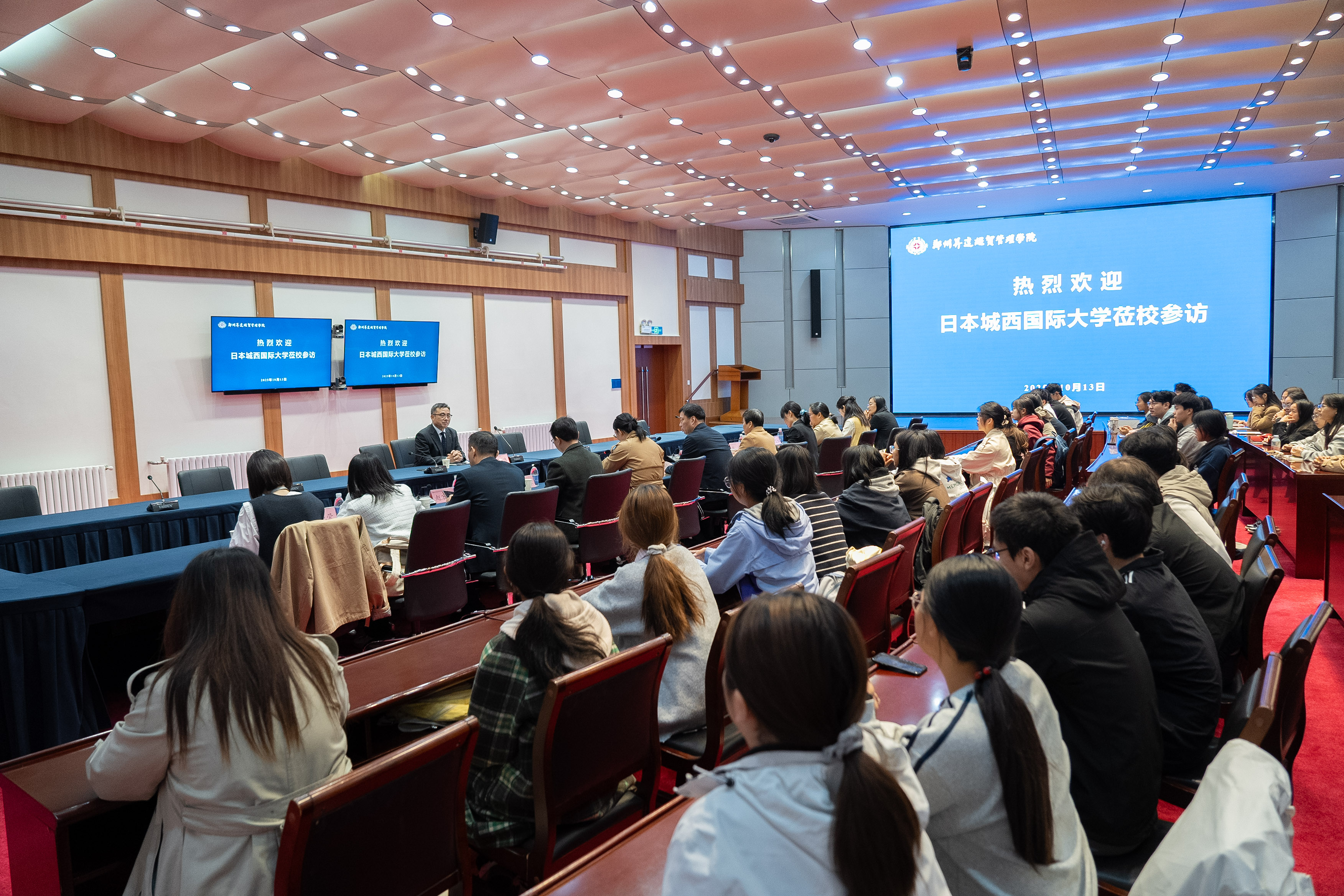 10月13日上午,日本城西国际大学董事长助理、人文科学研究科教授宫伟莅校访问。宫教授与公司主管教学工作的校领导座谈交流后,在国际会议厅为beats365唯一官方网站日语专业师生们举行了一场题为“AI时代的外语学习”的专题讲座。