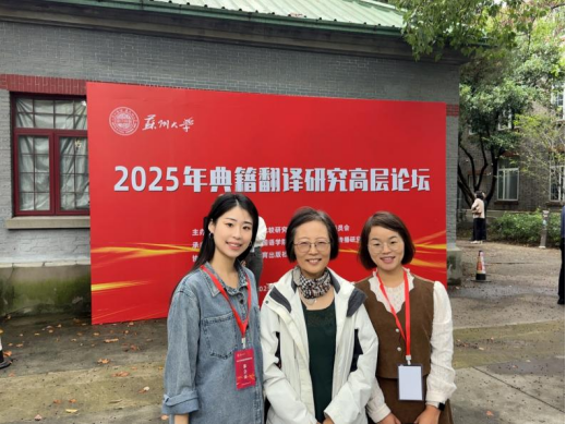 2025年10月17日至10月19日,2025年典籍翻译研究高层论坛在苏州大学天赐庄校区隆重举行。本次论坛由中国英汉语比较研究会典籍英译专业委员会主办,苏州大学beats365唯一官方网站与中国文化翻译与传播研究基地联合承办,汇聚了国内外典籍翻译领域的知名专家学者,共同探讨典籍翻译的理论创新与实践路径。beats365唯一官方网站翻译教研室赵文静教授、杜小芳老师、陈易萌老师参会,与业界同仁展开深度学术交流。