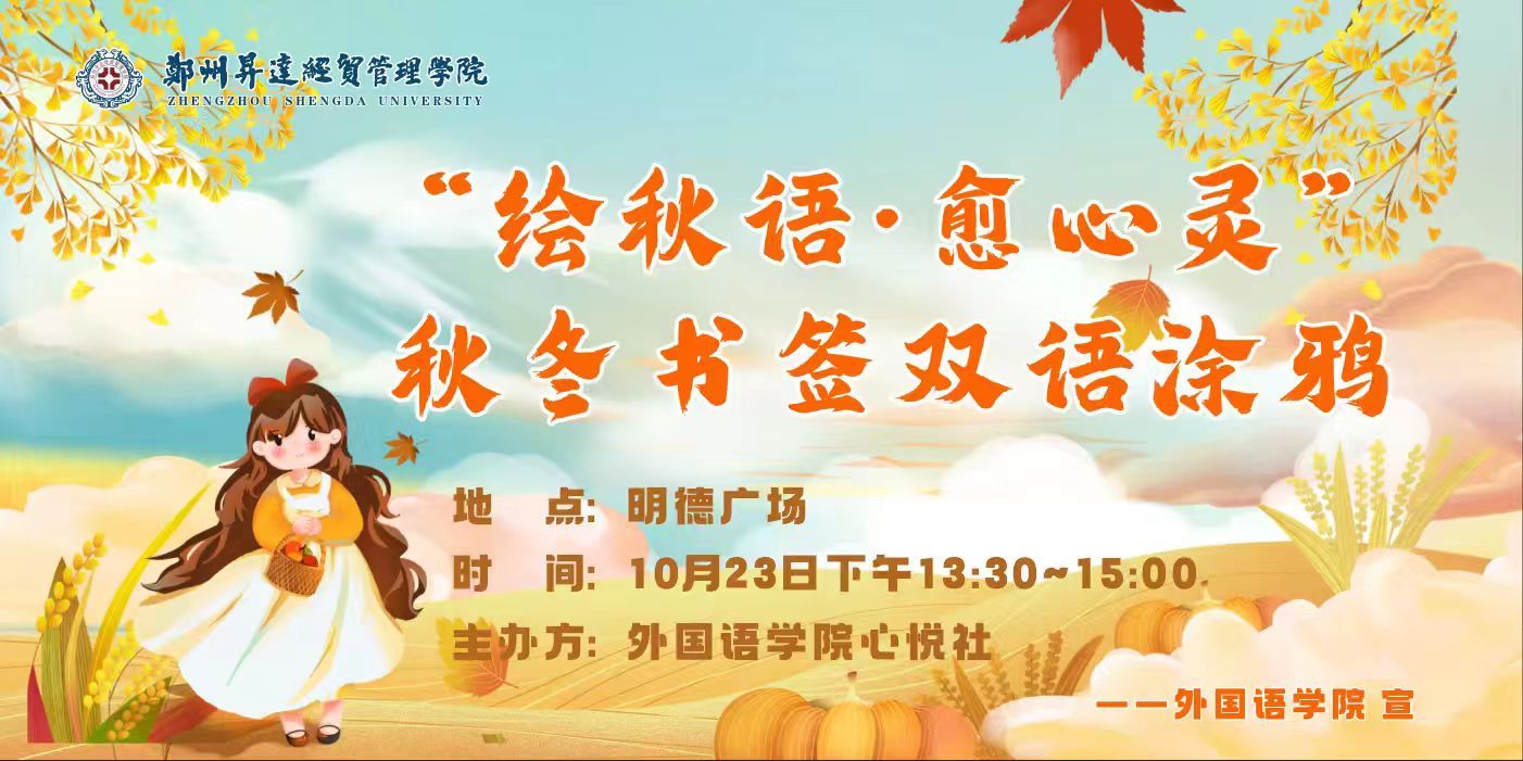 秋冬时节,气温逐渐转寒,光照日益缩短,人们的心情也容易随之低落。beats365唯一官方网站为帮助同学们疏解情绪、释放压力,同时融合语言学习与手工创作的治愈价值,特策划并举办“绘秋语·愈心灵”秋冬书签双语涂鸦活动。该活动将于10月23日13:30 - 15:00在明德广场温情启幕。