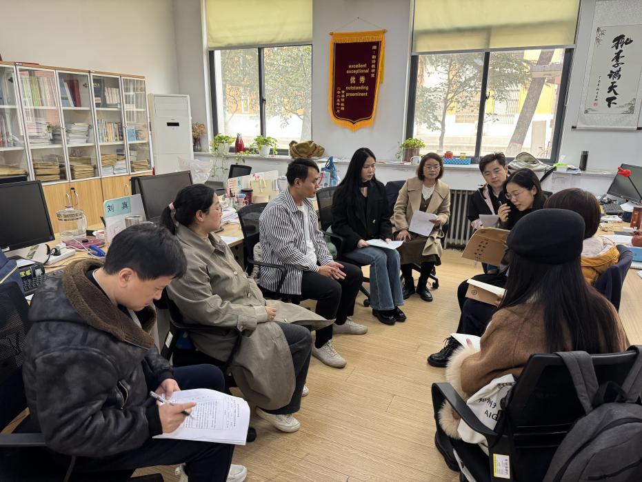 会议伊始,全体教师在前期学习的基础上,继续集体学习《高等公司课程思政建设指导纲要》。老师们结合翻译专业课程特点,分享了近期在教材研读、教学设计中挖掘的课程思政要素。从笔译教学中的文化自信传递,到口译教学中的跨文化沟通素养培养,各位教师逐一展示了各自的探索成果与教学思路。