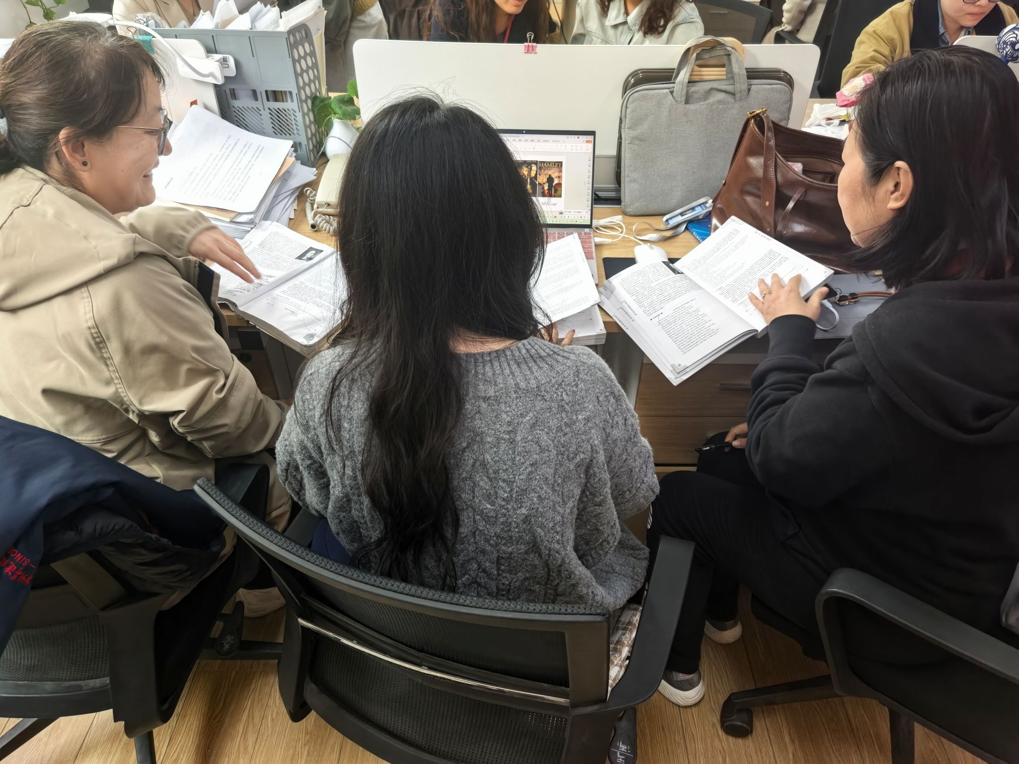 活动中,各课程组教师结合近期教学实践与课程思政学习体会,围绕多项关键教学问题展开深入交流。教师们结合英语阅读、写作、听力等不同课程模块,举例分享了如何从文章主题、人物故事、文化背景中挖掘爱国主义、文化自信、团队协作等思政元素,并探讨了自然融入教学过程的方法,避免思政内容与教学内容脱节。整个交流过程坦诚热烈,教师们各抒己见、相互启发,碰撞出诸多富有建设性的思想火花。