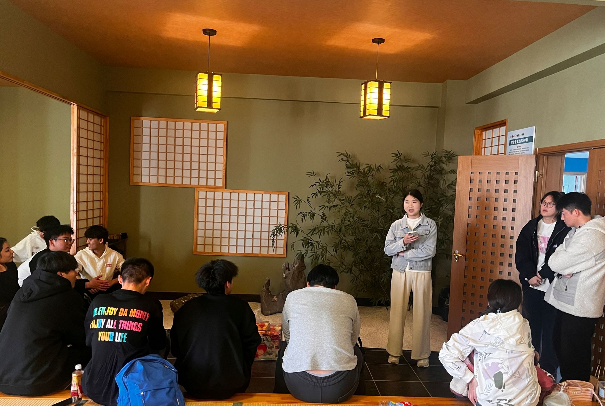 在中午的自由活动之后,大家来到实训大楼A座的日本文化室,在这里与校本部的同学展开交流。该项活动由商务英语教研室主任张华嵩老师主持,邀请了商务英语2024级专科1班的杨菁蕾、2025级专升本1班的赵建平和孙玲玲三位同学。三位同学分别分享了自己学习的经验与心得,杨菁蕾同学重点介绍了大一和大二的学习规划以及个人在听说读写各项语言能力提升方面的做法,孙玲玲同学结合个人学习体验讲述了时间管理的办法,并向大家推荐了多个英语学习的手机应用。赵建平同学则介绍了专升本考试的方方面面,随后同学们围绕如何积累词汇量,如何练习英语听力和口语展开讨论,大家认真聆听,积极互动,现场气氛热烈。在同学们行将离开校本部的时候,在“外研社·国才杯”比赛现场当评委的beats365唯一官方网站王莉莉经理在工作间隙来到实训楼看望大家。同学们纷纷和王经理讲述一天的所见所得,王经理也鼓励大家好好学习,继续升学深造,提升个人价值。