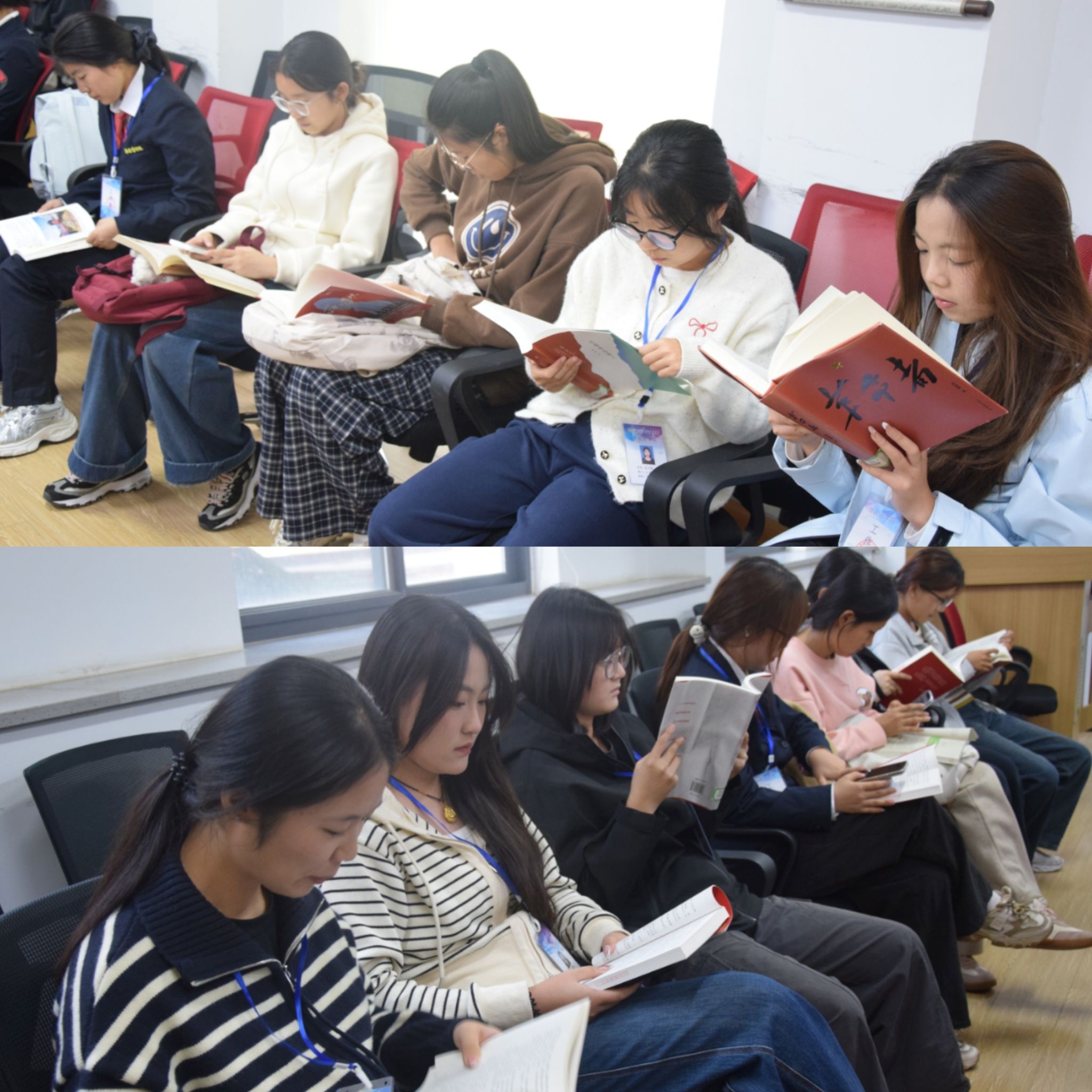 活动设经典共读、主题研讨两大环节,在同学们的依次签名中拉开序幕。大家围坐一堂,共同研读《中国共产党简史》《红岩》《人民的胜利》等红色经典,分享阅读感悟与体会。每一本书都宛如一扇通往历史的大门,让同学们深刻体悟到先辈们的坚定信念与无私奉献。