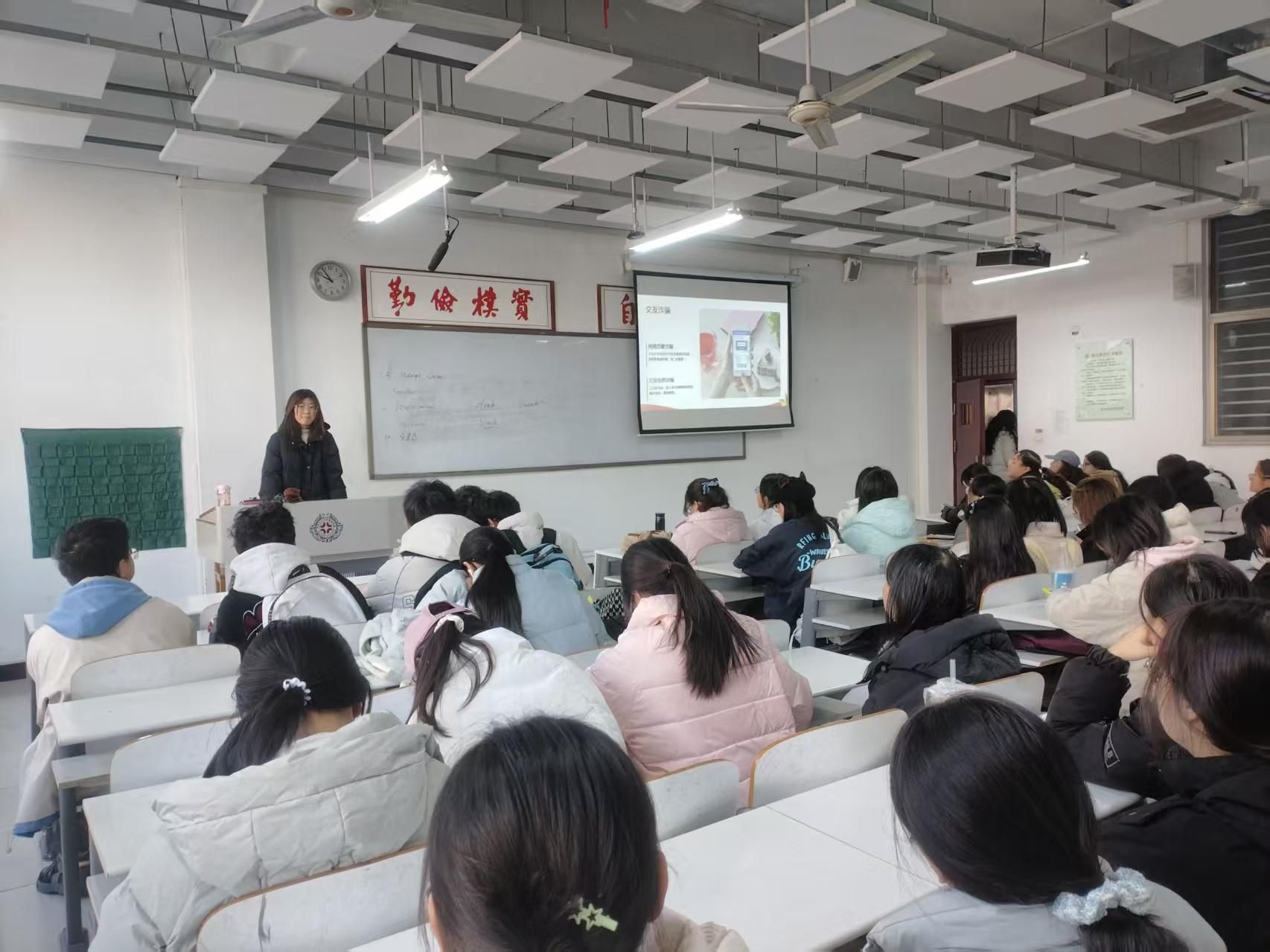 本次主题团日活动聚焦反诈核心需求,从多维度、多层次普及反诈知识。结合专业特色,团支部采用双语言模式开展活动,以新颖形式充分调动了同学们的参与热情。活动过程中,负责人首先介绍生活中可能遭遇的各类诈骗情形,随后通过具体事例深入阐述诈骗的严重危害,再从逻辑与常识角度剖析诈骗语言的常见矛盾点,最后分享实用反诈方法,助力同学们有效防范诈骗。