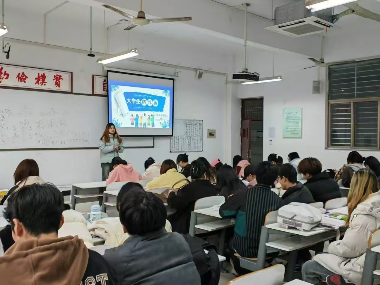 活动多环节有序开展:团支书携手心理委员依托PPT,结合高校高发诈骗案例剖析作案手法,拆解诈骗分子针对员工心理设下的套路;随后通过“知识竞赛+情景模拟”形式开展互动,以抢答环节考察反诈知识、借角色扮演还原骗局并研讨应对方案;活动特邀辖区派出所民警线上分享,民警传授“三不一多”反诈原则,针对跨境诈骗场景进行专项提示,并细致解答同学各类疑问。
