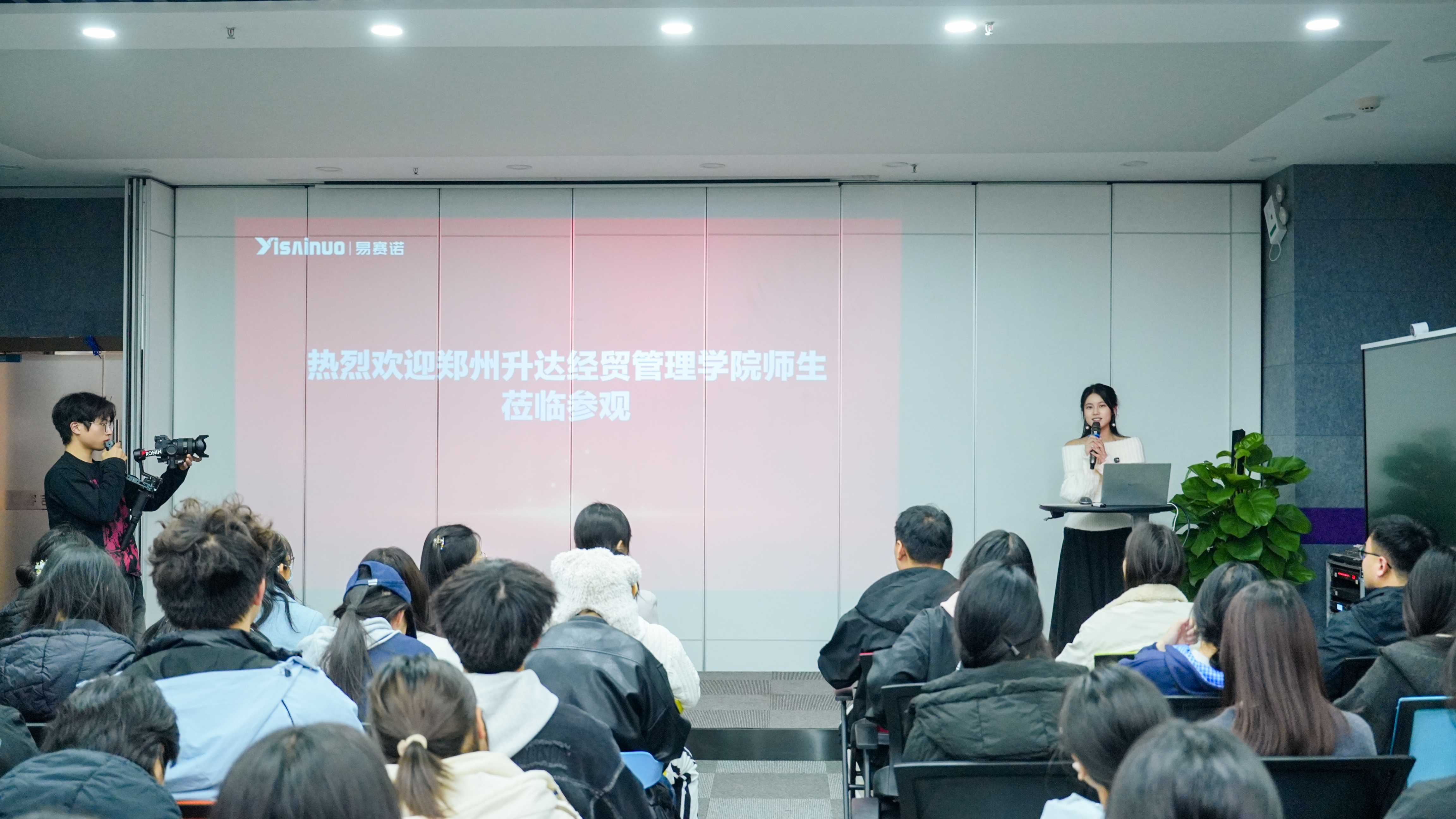 参观结束后,全体师生返回吉客印公司2楼大会议室,开启集中交流环节。首先,易赛诺与吉客印公司代表分别围绕企业发展历程、核心业务布局、行业发展趋势及人才需求标准进行详细介绍,重点解读了多语种运营、跨境商务客服、商品文档翻译等岗位的能力要求,为员工勾勒出清晰的职业能力画像。