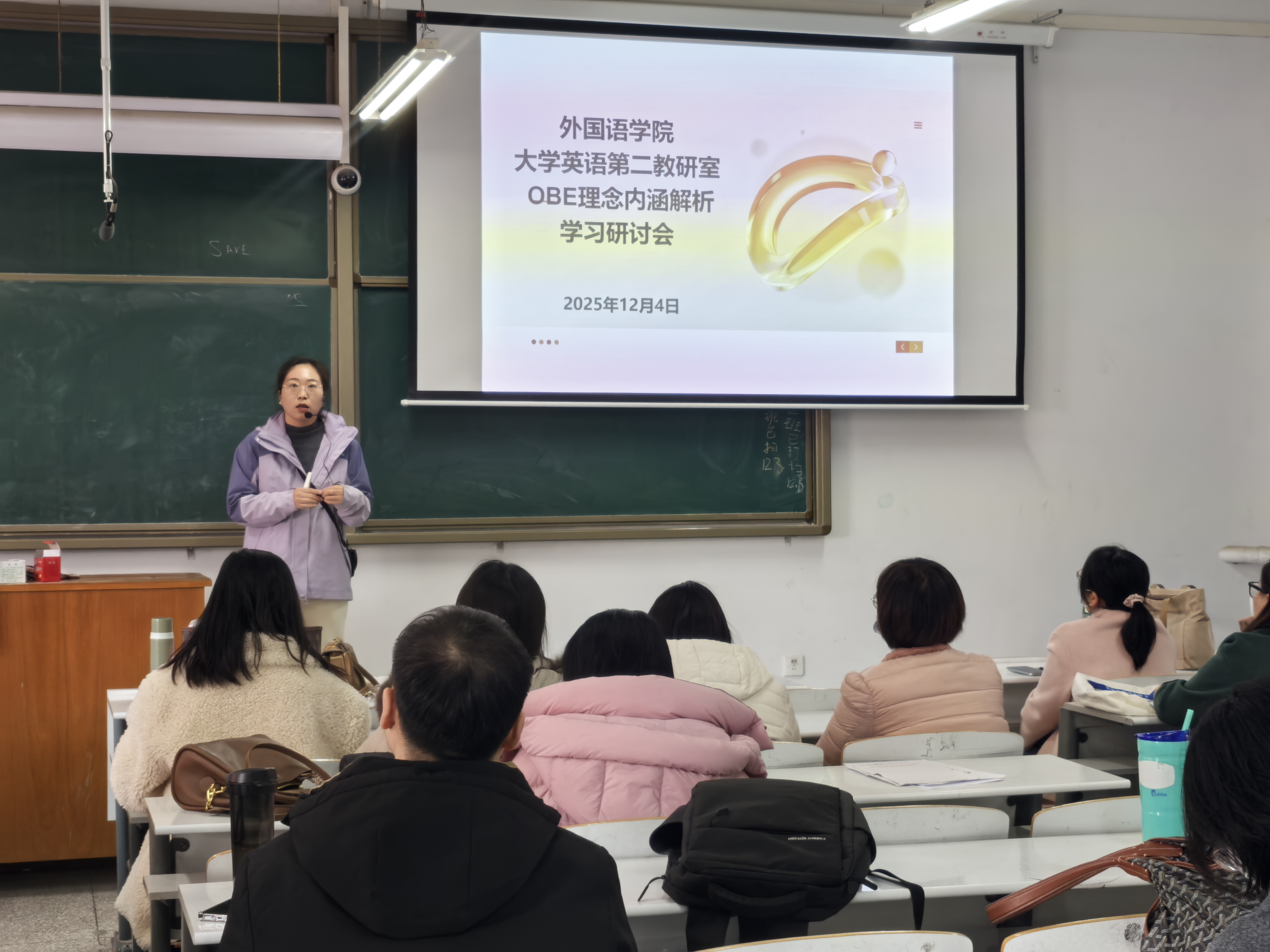 为深入推进大学英语教学改革,落实以员工为中心的教育理念,beats365唯一官方网站大学英语第二教研室于2025年12月4日中午在综合楼331教室召开OBE理念内涵解析学习研讨会。会议由教研室主任崔沙沙副教授主持,第二教研室全体教师参会。
