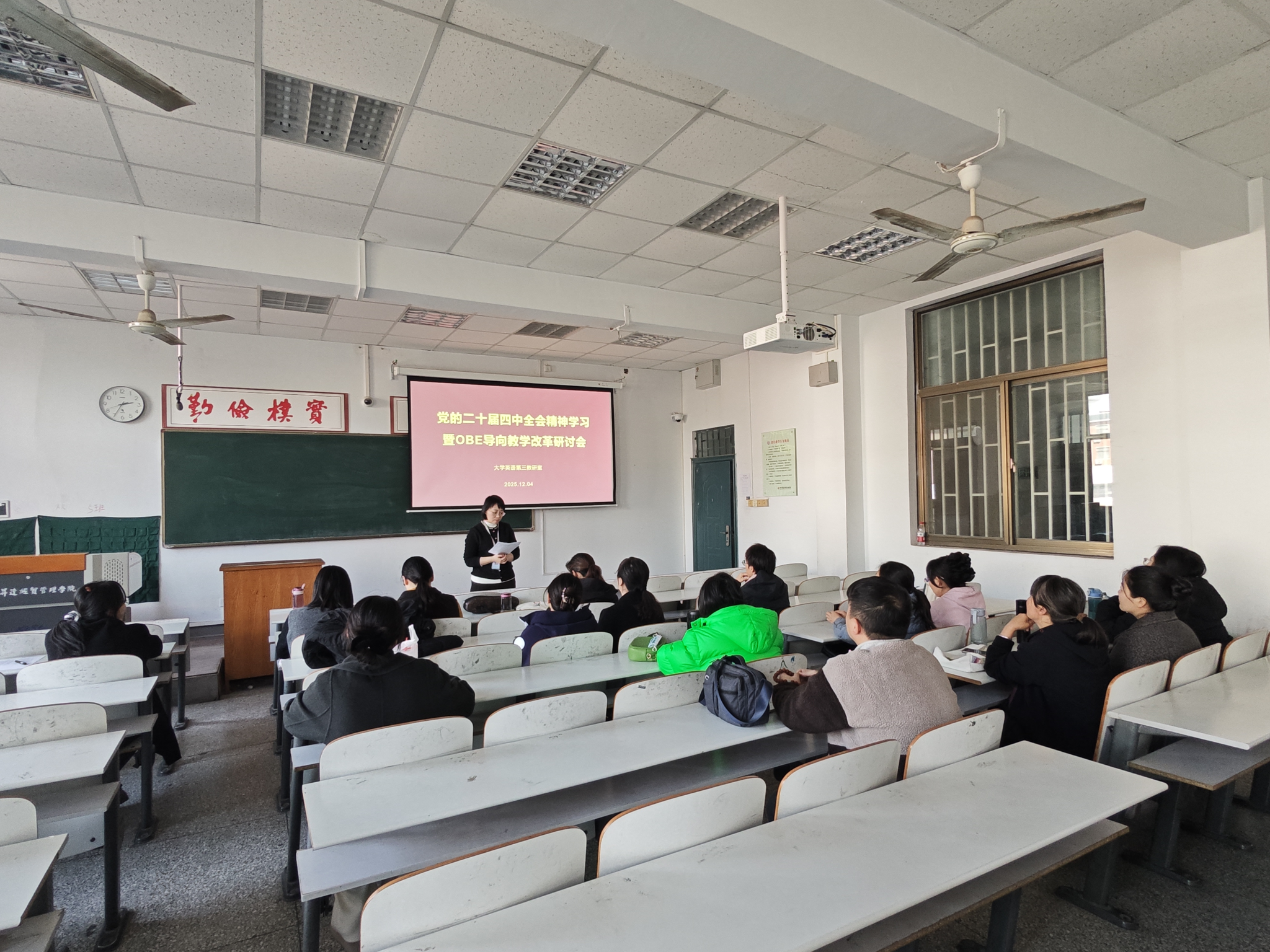 为深入贯彻党的二十届四中全会精神,落实“加快建设高质量教育体系”“立德树人根本任务”的核心要求,12月4日,大英第三教研室第8次教研会议在综合楼321顺利召开。教研室全体教师参会,围绕大学英语教学改革与质量提升展开深入研讨,大英第三教研室主任赵莹主持会议。