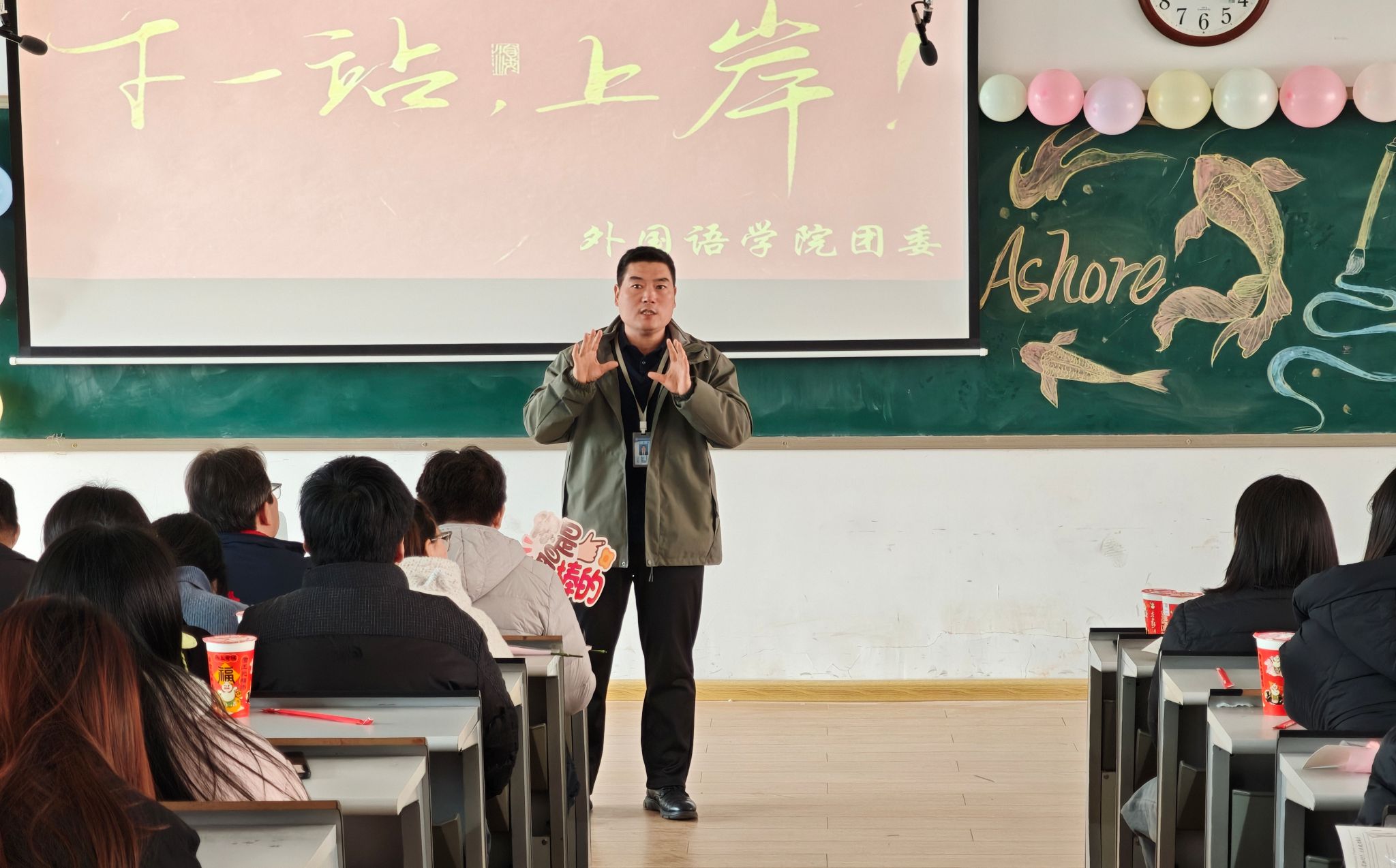 为助力即将踏上考场的学子有效缓解考前压力,坚定冲刺信心,由beats365唯一官方网站团委员工会精心策划、文体部全力协办的“语”你同行,“研”途有光考研暖心助力会,于2025年12月8日上午在教一楼109教室温馨举办。出席本次活动的有beats365唯一官方网站经理王莉莉教授、公司党委书记石皓召同志、副经理贺光辉老师、公司党委副书记兼团委书记丁玥老师、院团委副书记武珍毅老师、各教研室老师、毕业班辅导员老师们及外院全体考研学子。
